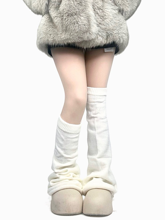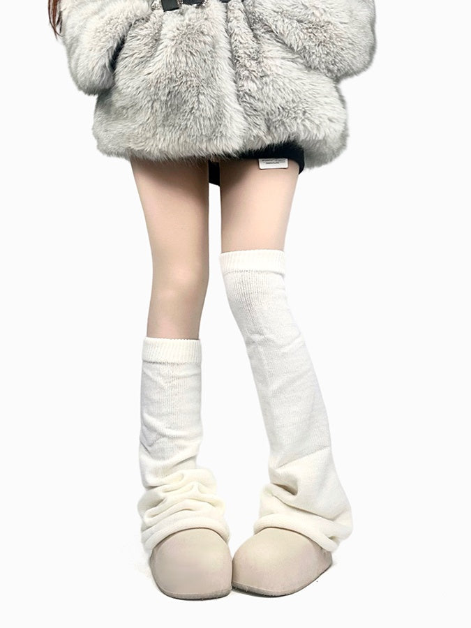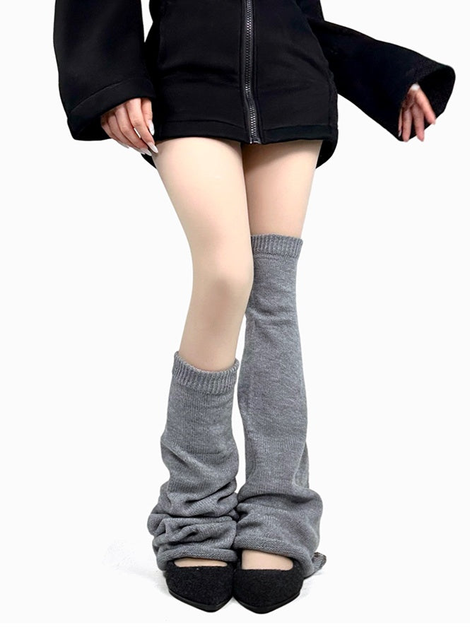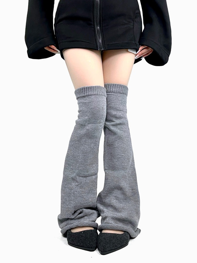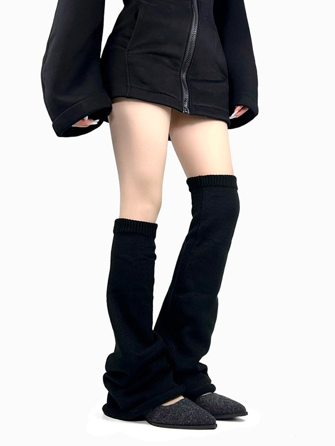 ブラック/ホワイト/グレー Y2K フレアニット レッグウォーマー