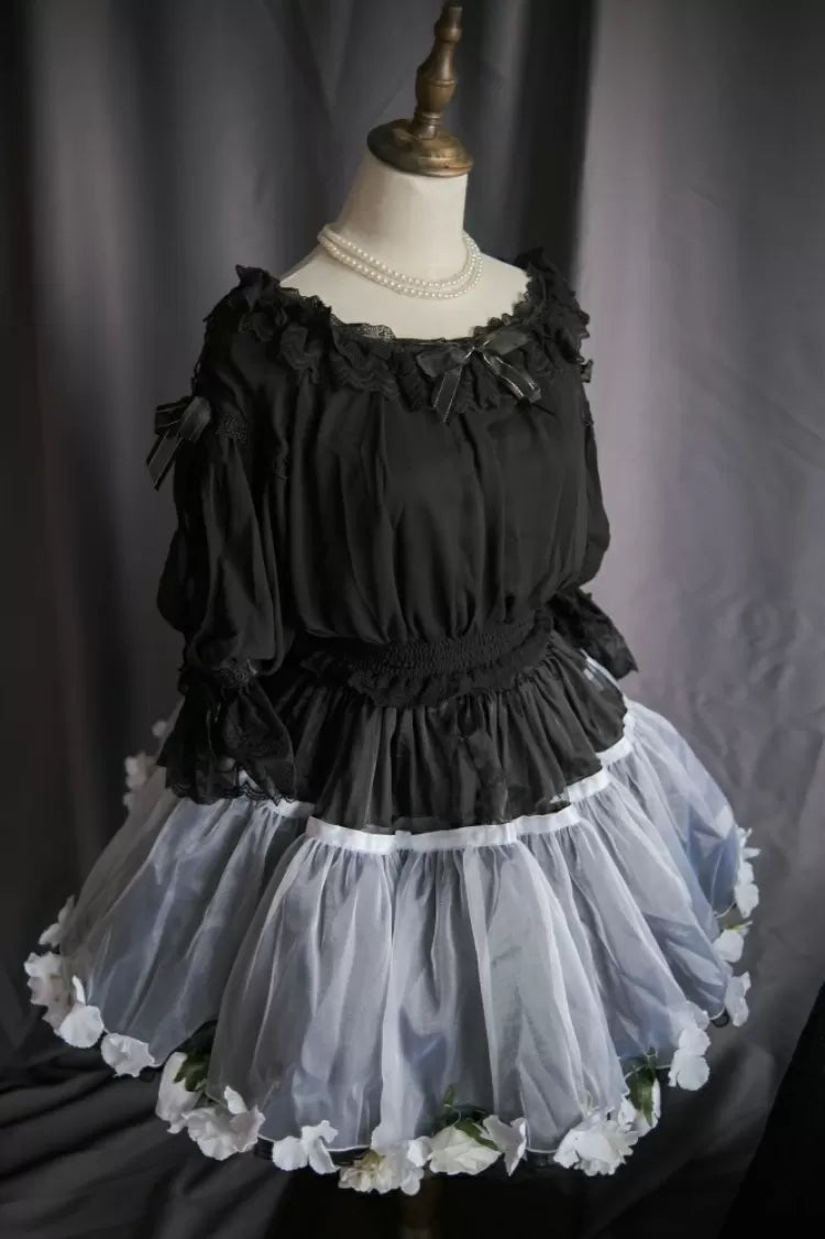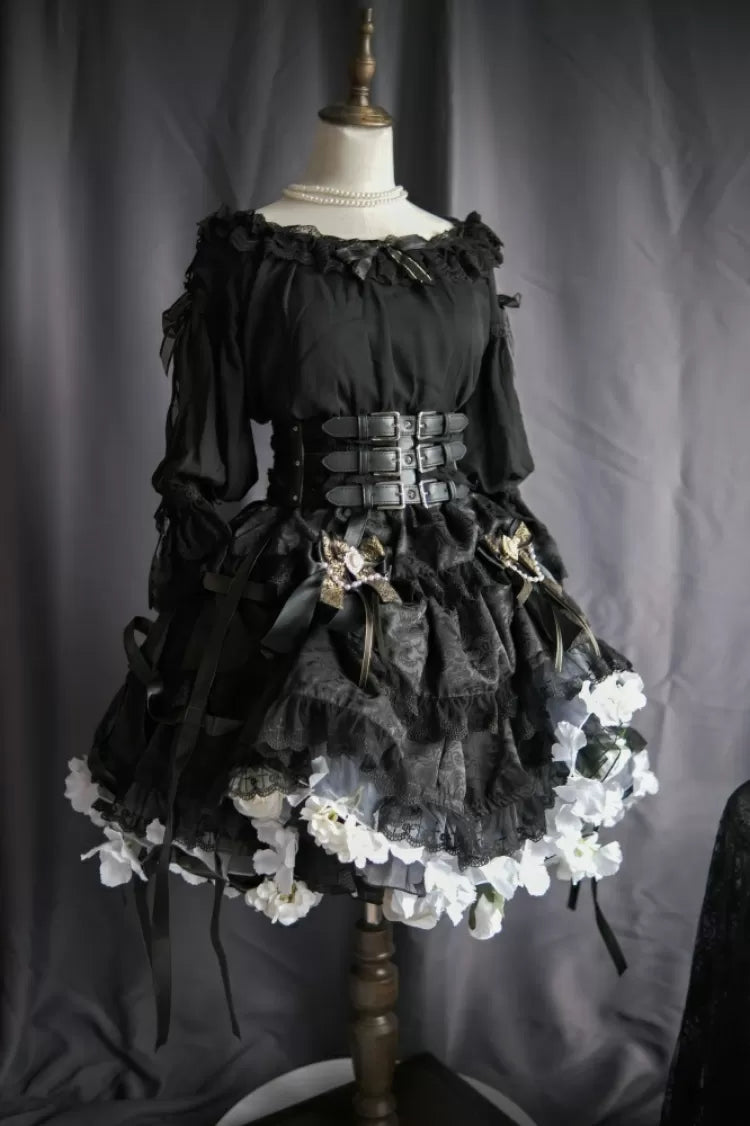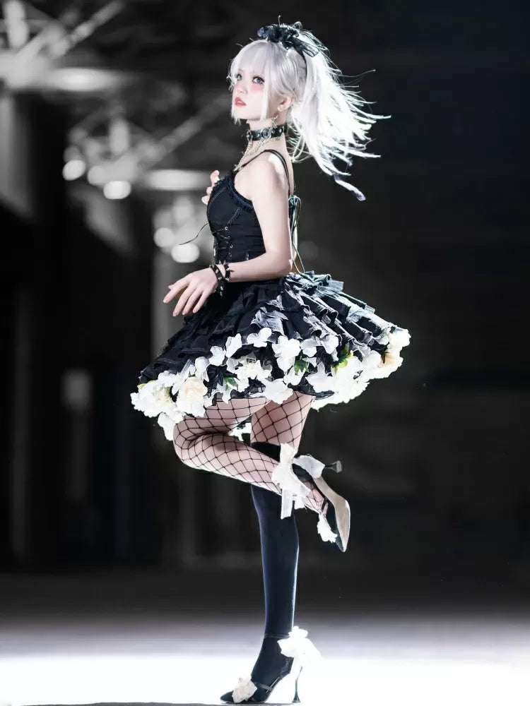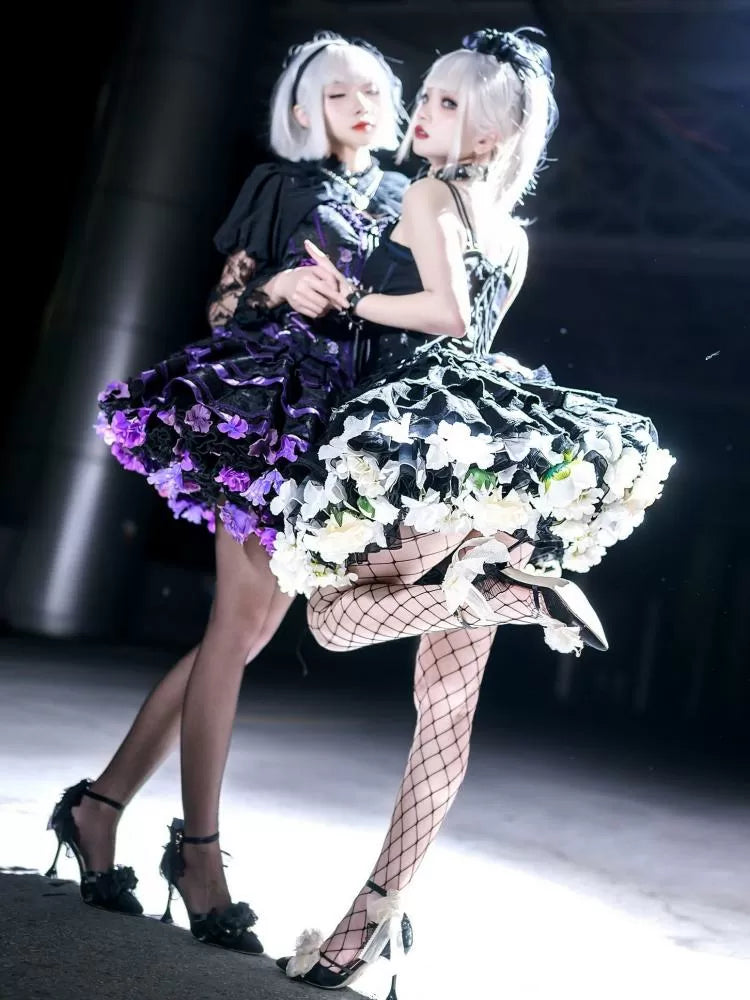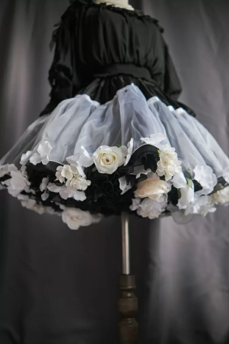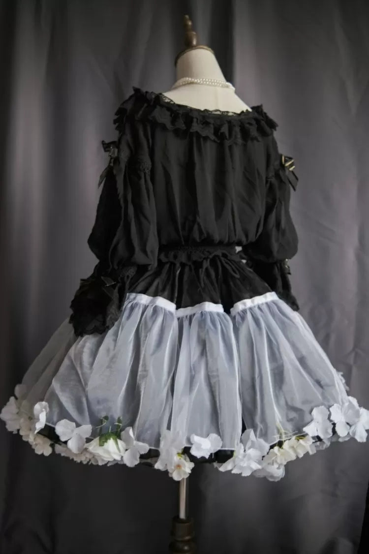 黒と白のオールドスクールロリータファッションドレス蝶結びロリータJSKセット
