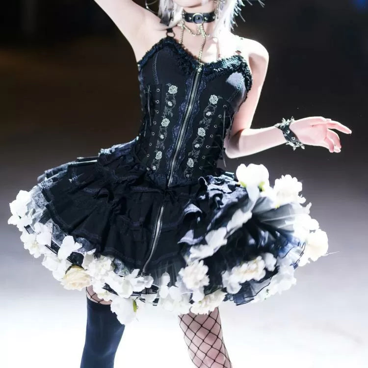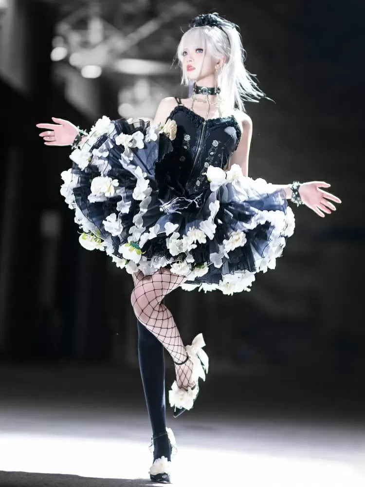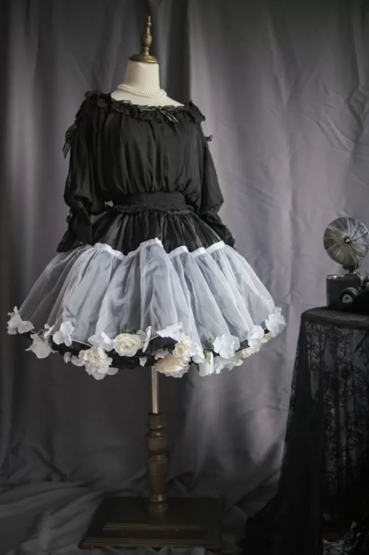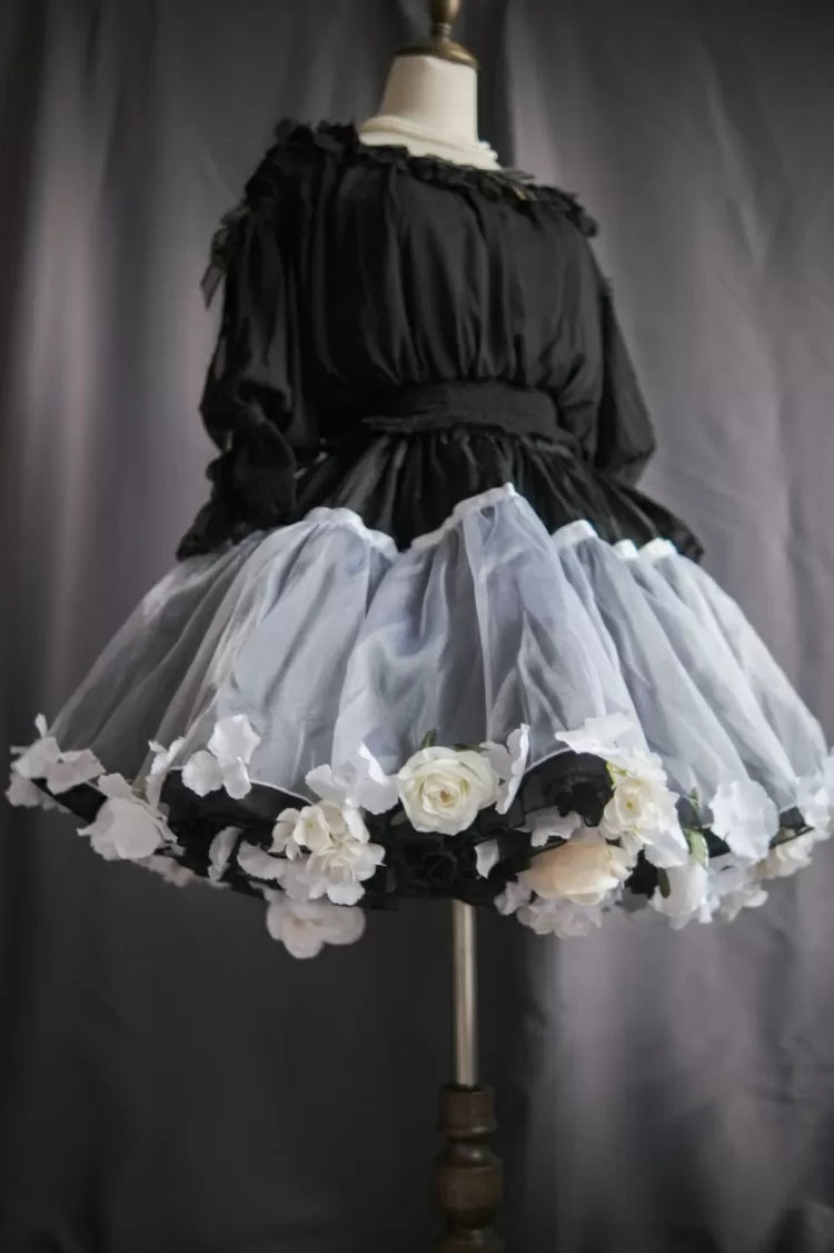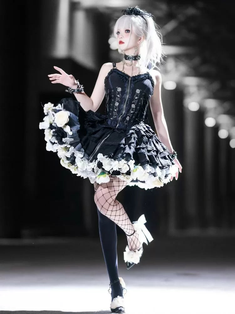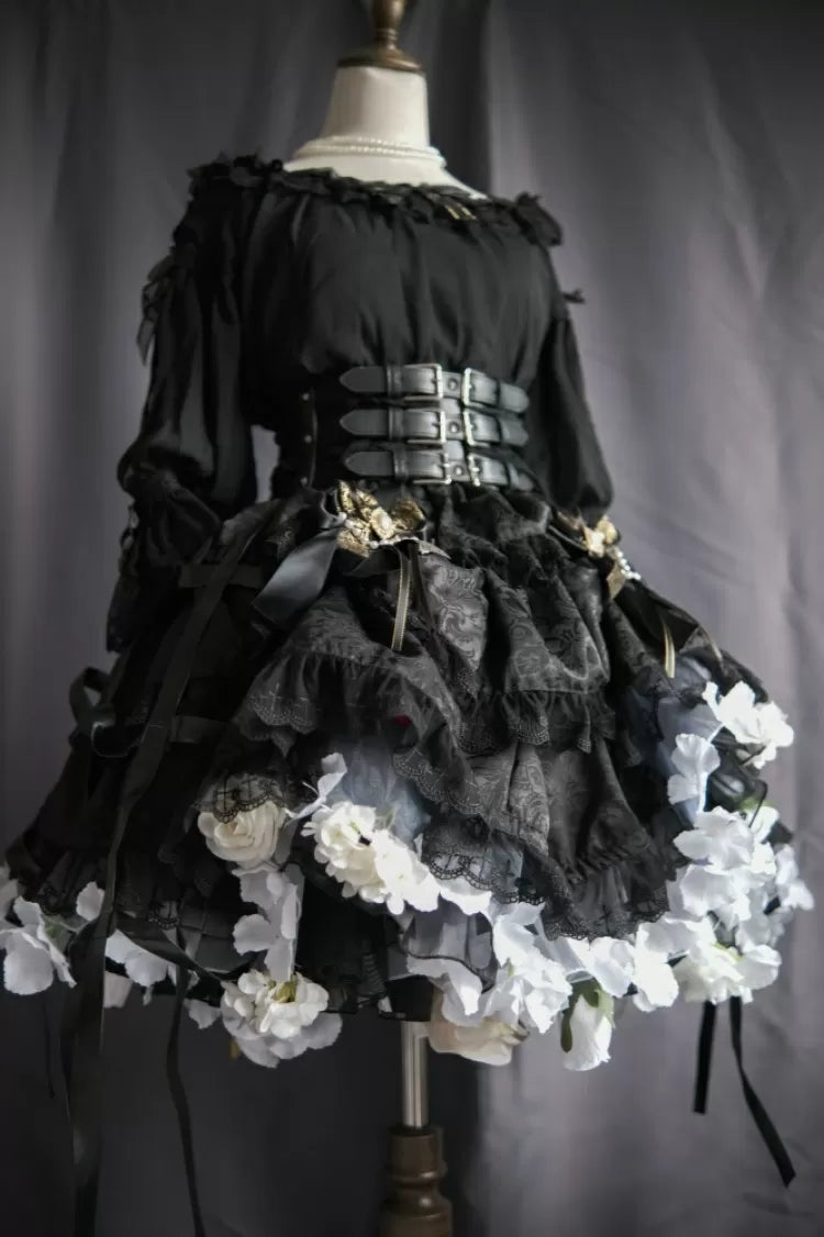 黒と白のオールドスクールロリータファッションドレス蝶結びロリータJSKセット