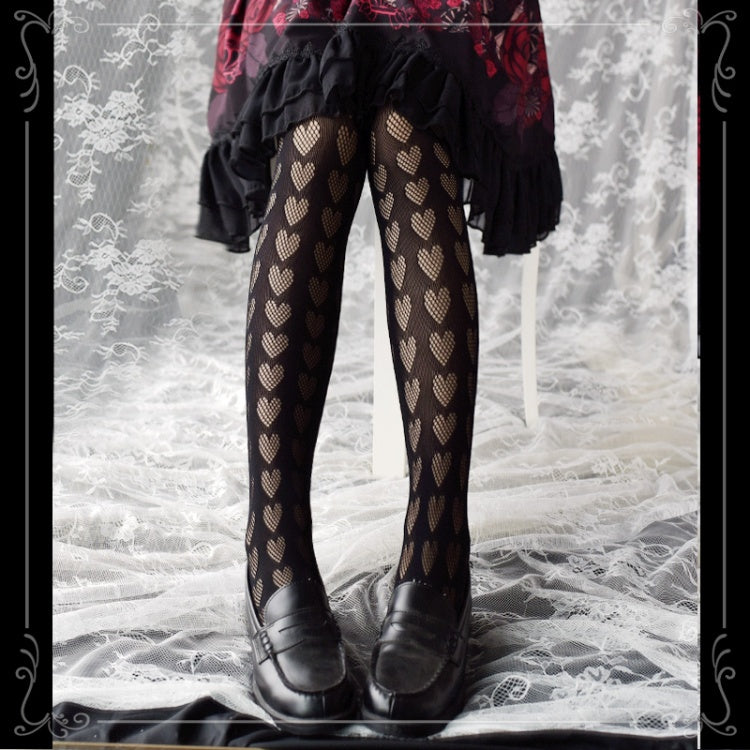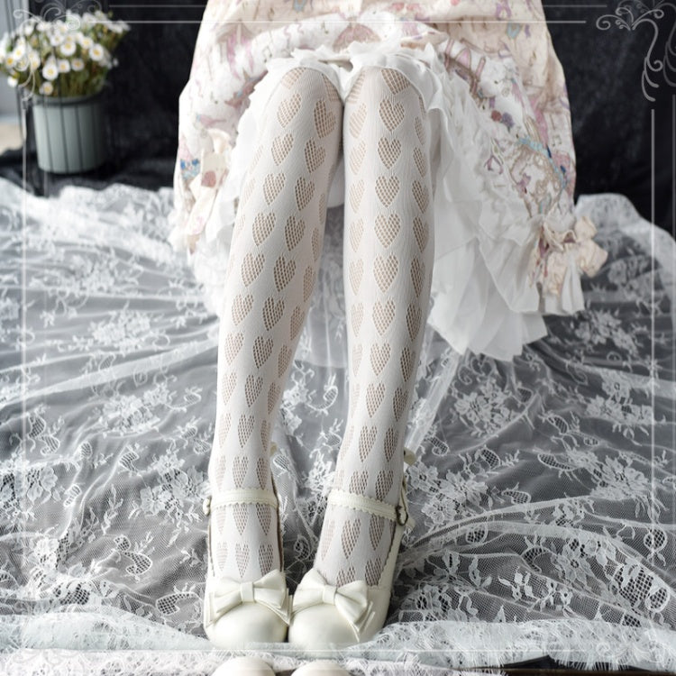 ブラック/ホワイトハート柄タイツ