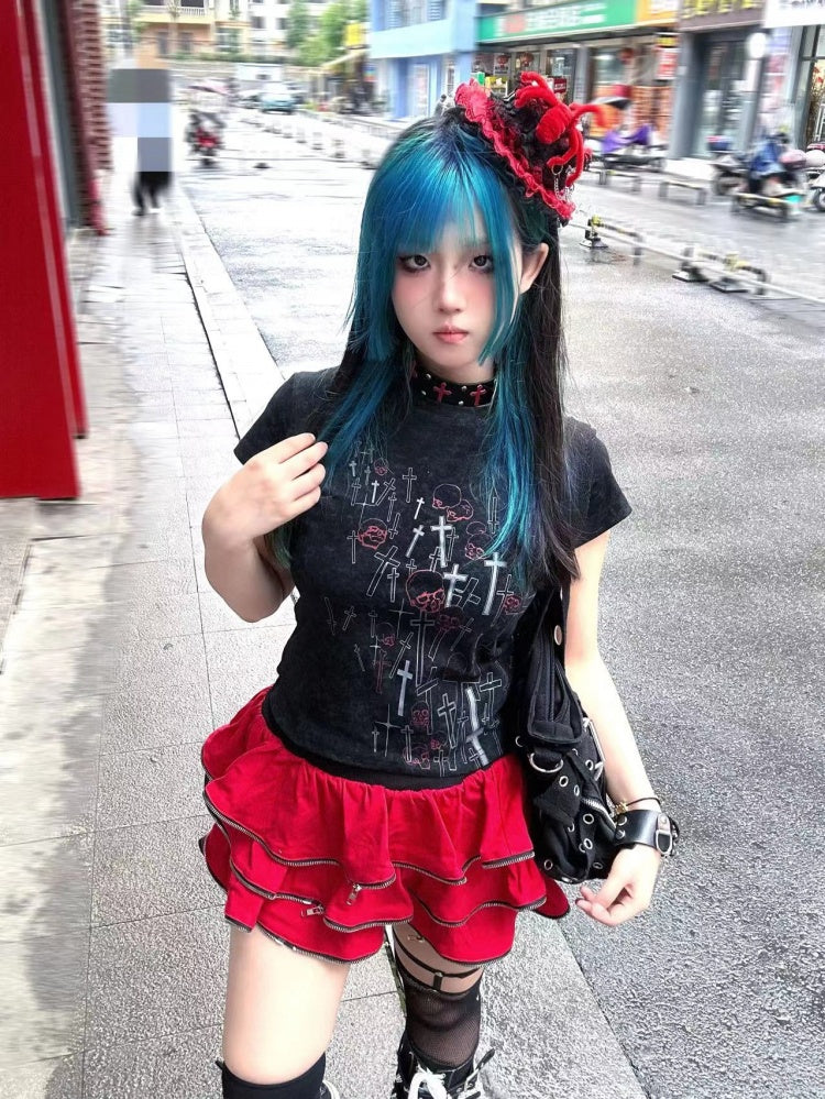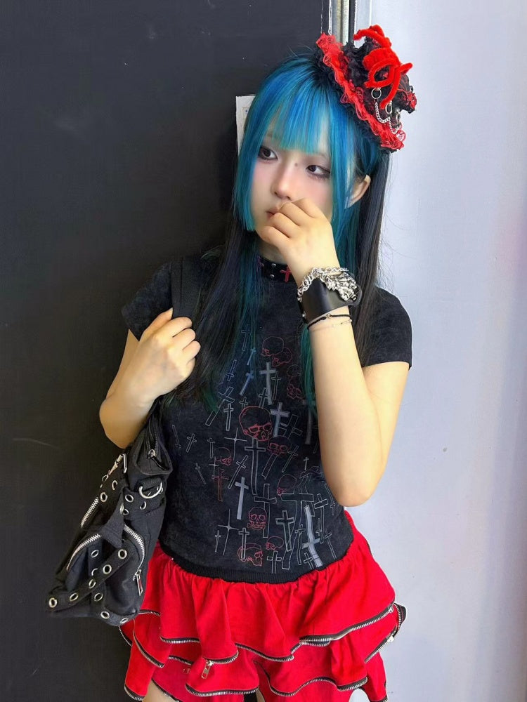 キュートなブラックホワイトのスケルトン&クロストップで、さりげない個性を演出。大胆なスケルトン&クロス柄がエッジの効いたスタイルを演出し、ブラックとホワイトの配色で幅広い着こなしに対応。さりげなくスタイリッシュに差をつけたいあなたにぴったりのアイテムです。