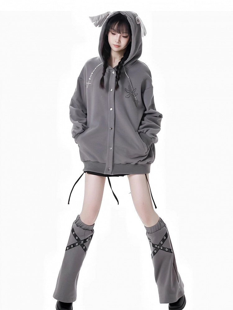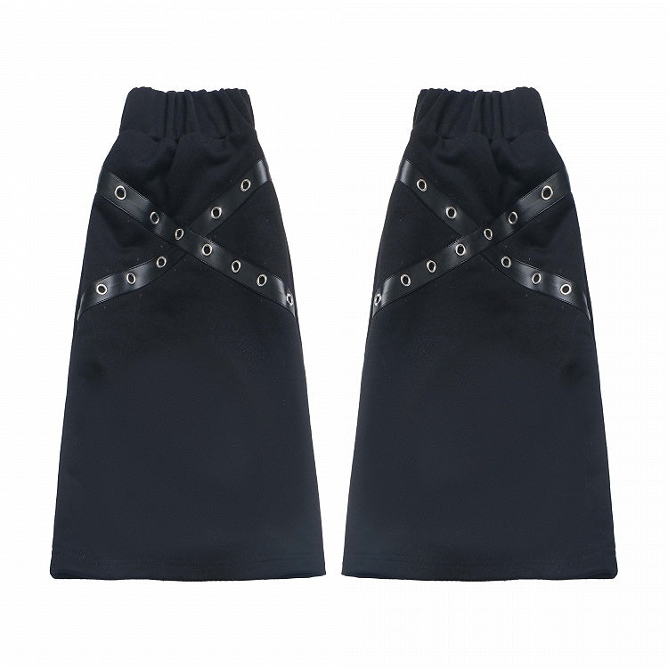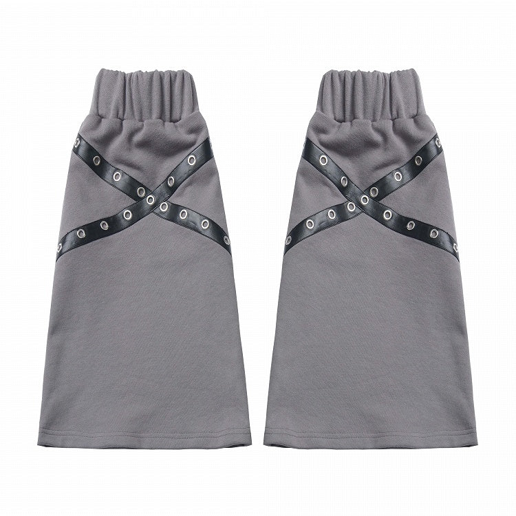 ブラック/グレー クロス PU ストラップ レッグウォーマー