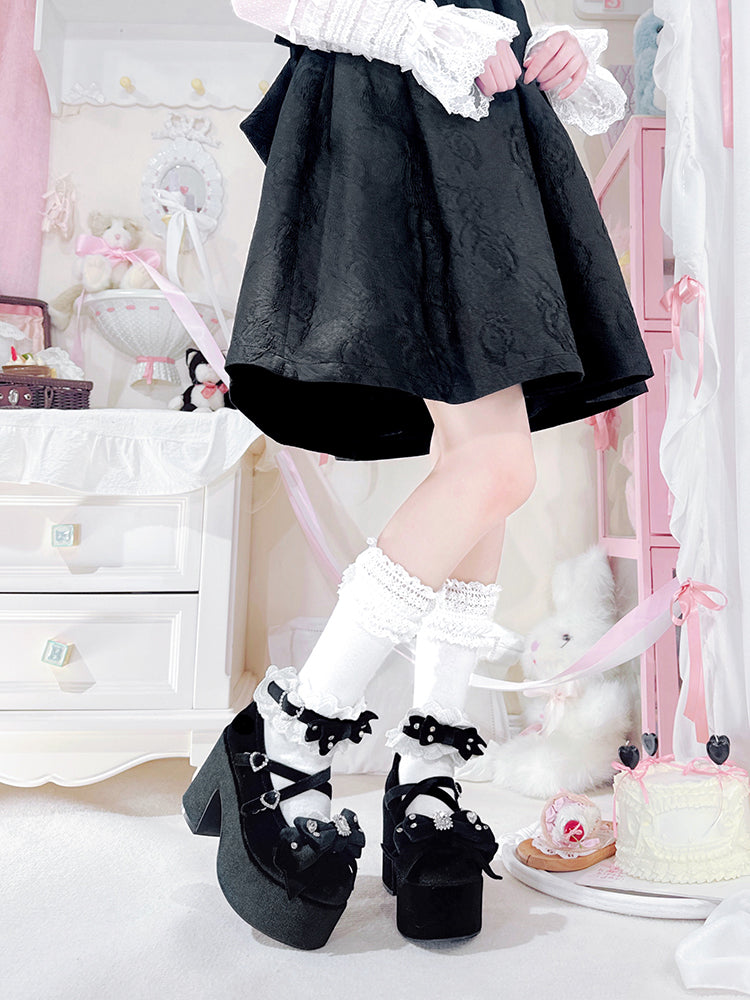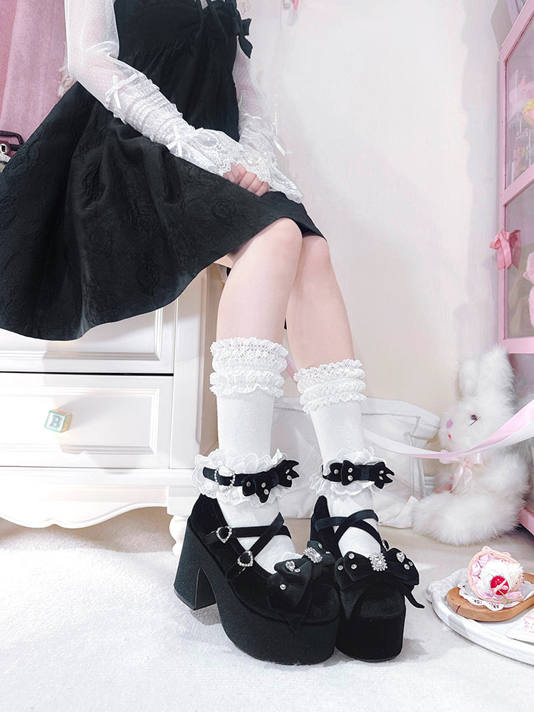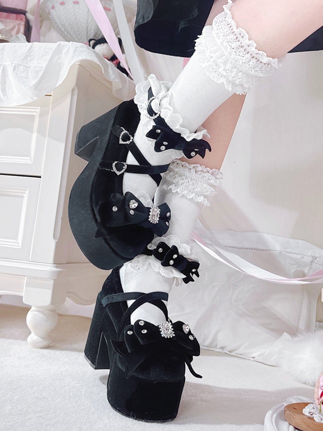 ブロック・メアリー・アクセント・スクール・ブラック・ボウ・ロリータ・ヒール・オールド・ベルベット・ケイ・ジライ・ジェーンズ・ハイ