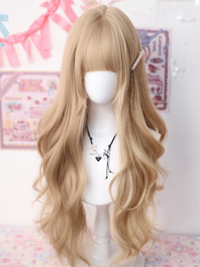 ブロンドのアンダーバスト長さ65-70CMのウェーブウィッグ(前髪付き)