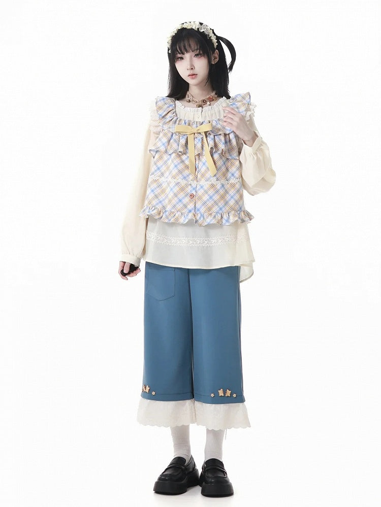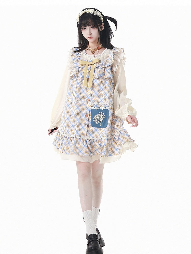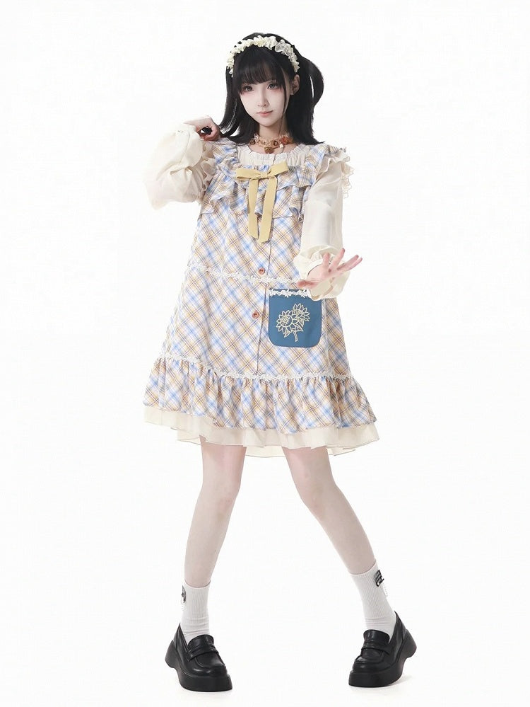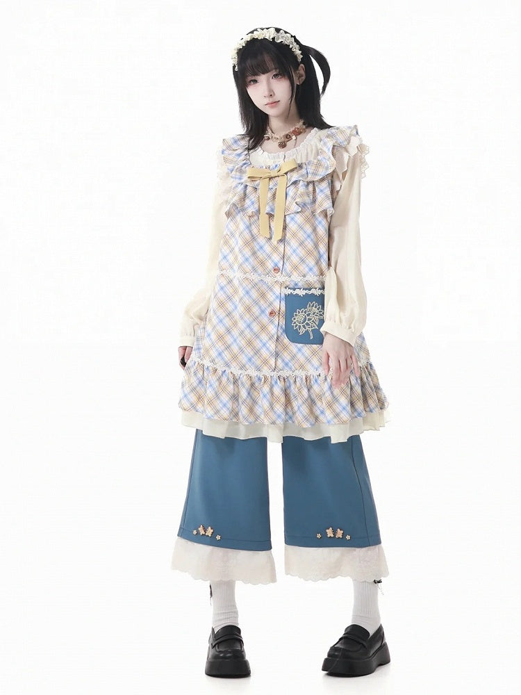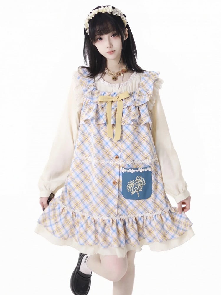 青と白のオールドスクールロリータファッションドレス 蝶結びディテール JSK セット