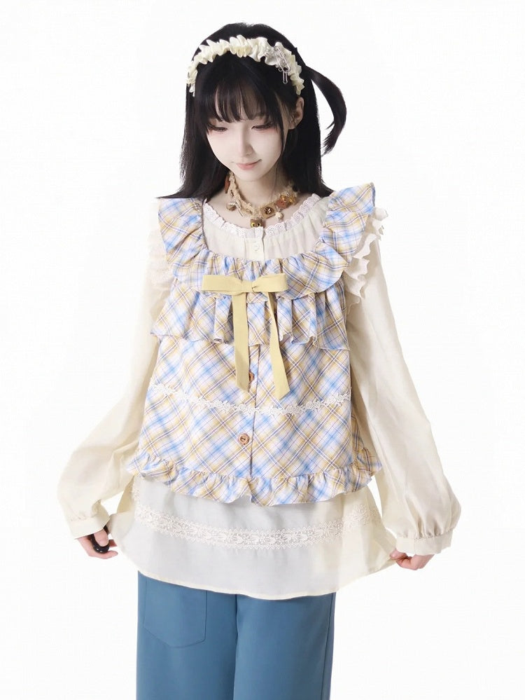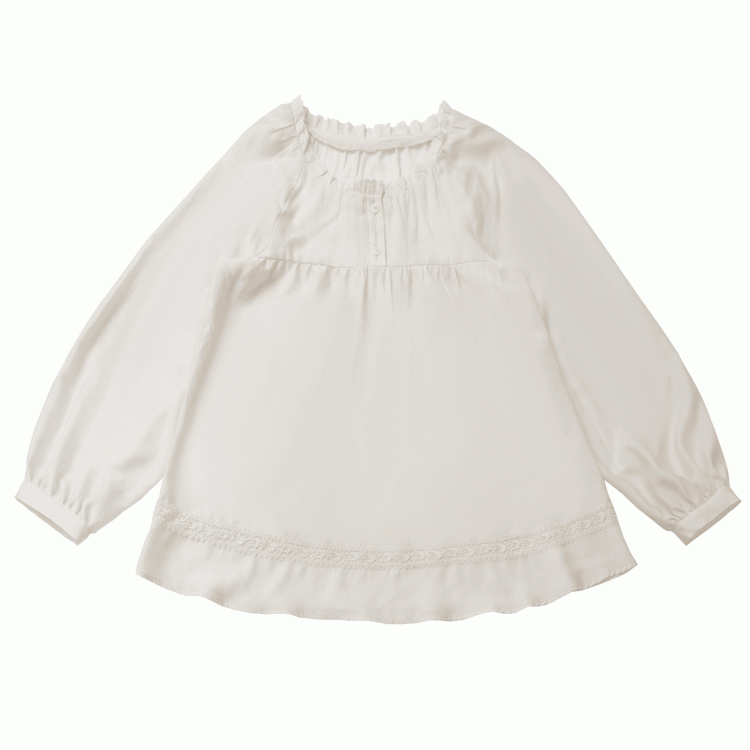 ブラウス ベージュ レーストリム 長袖 セミシアー