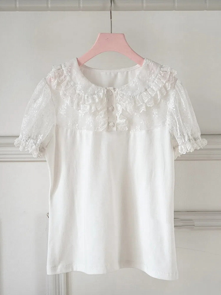 ホワイトピーターパンカラー半袖ロリータブラウス