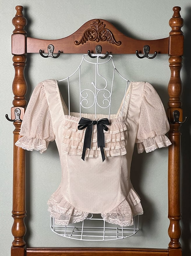 クリアランスサイズ S バスト81-100CM ベージュ スクエアネック 半袖 ブラウス
