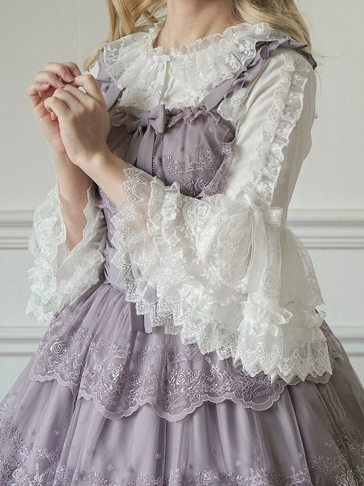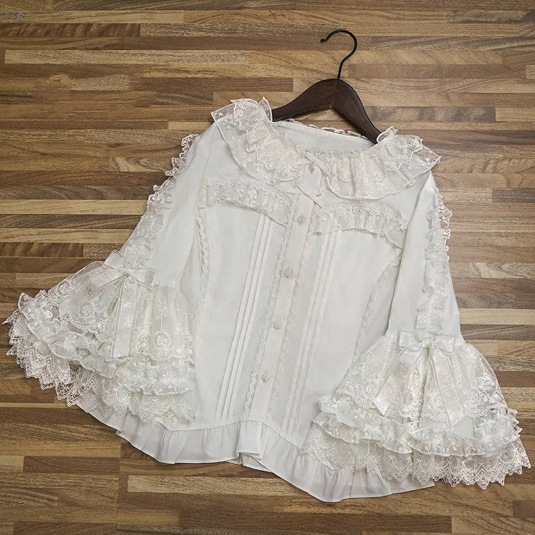 ブラウス ホワイトネックライン 3/4フリルロリータスリーブ