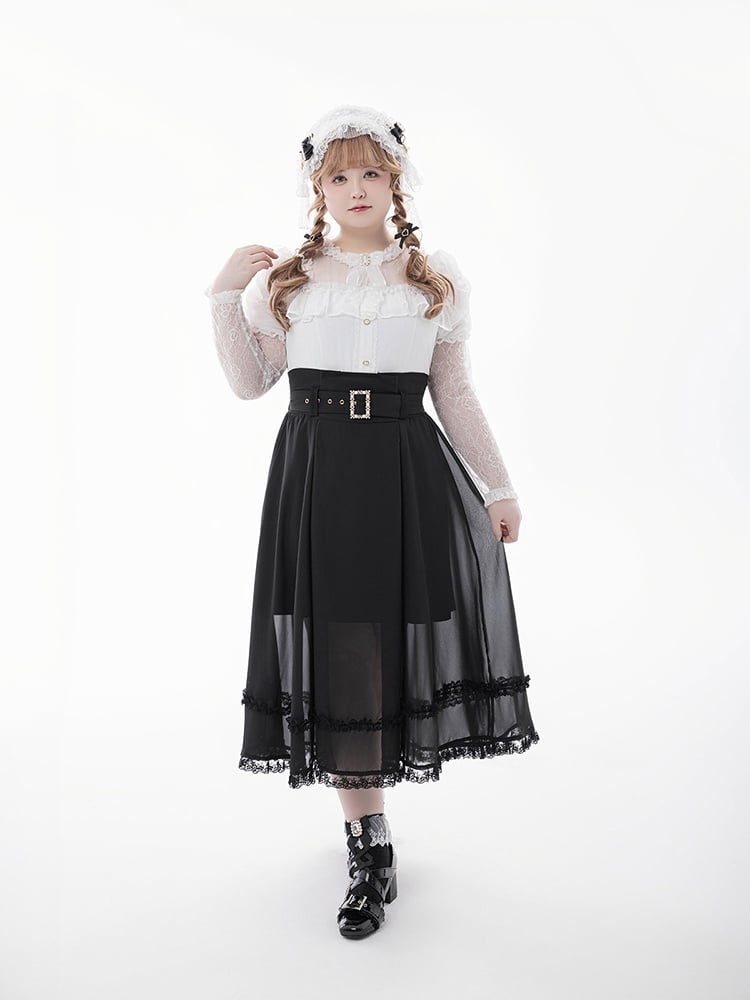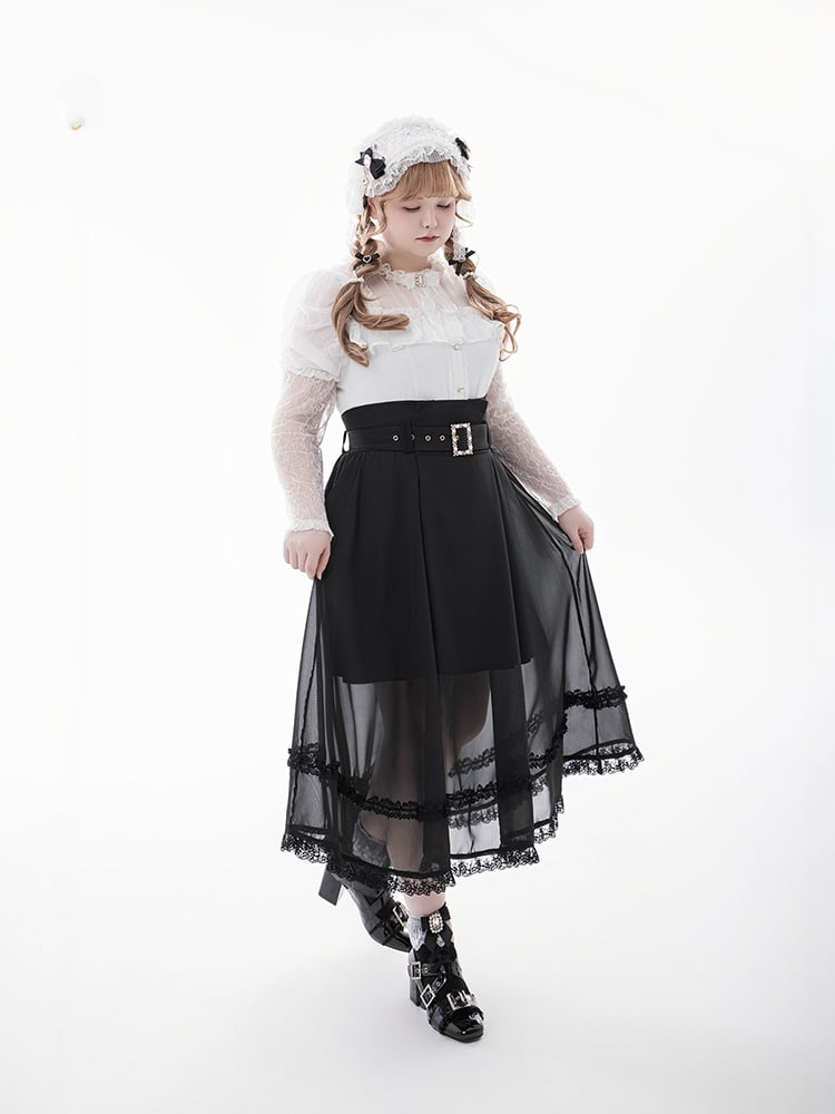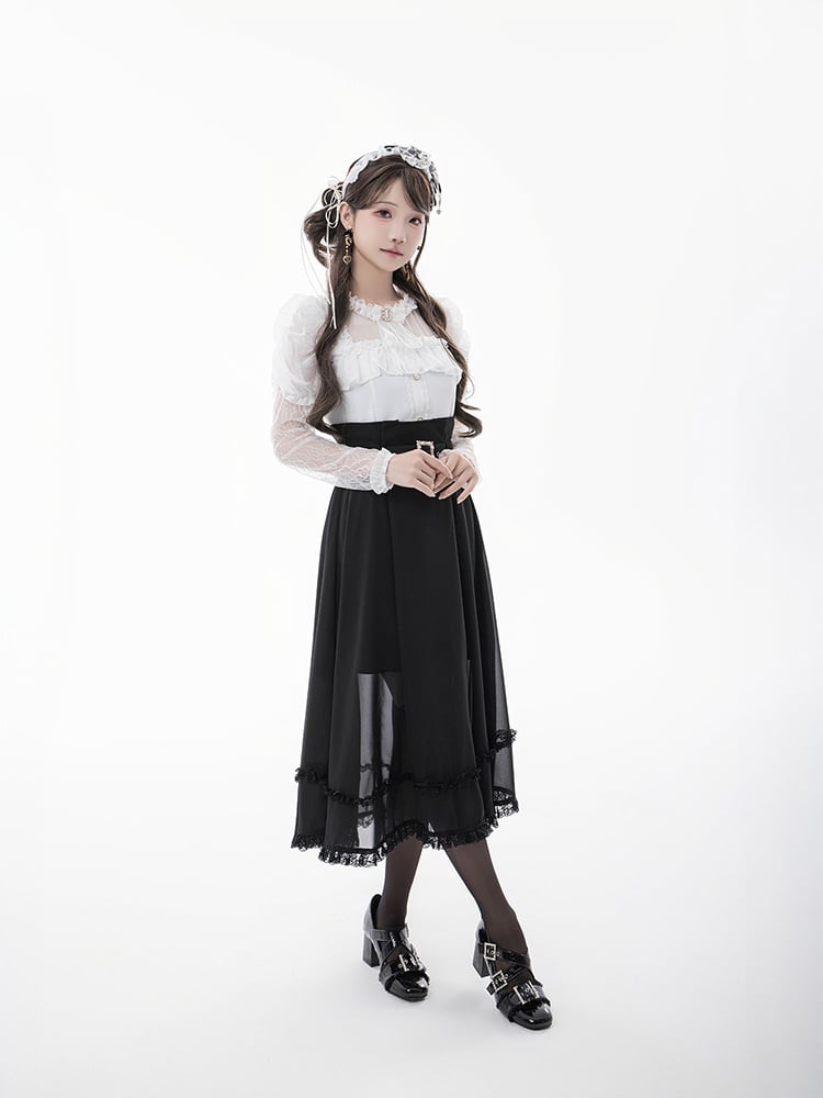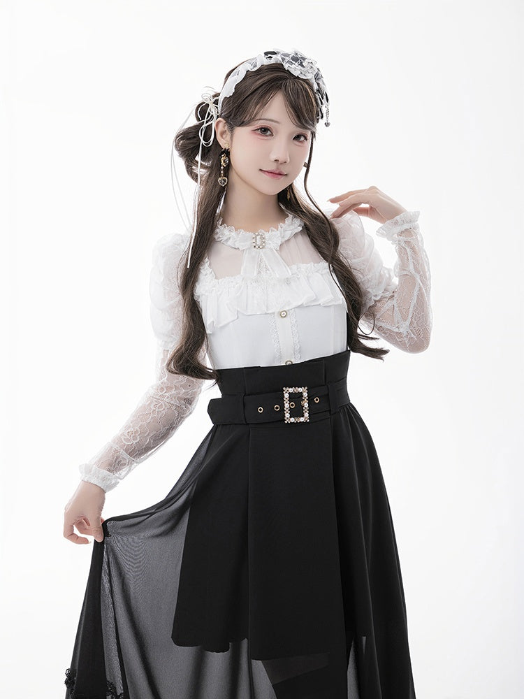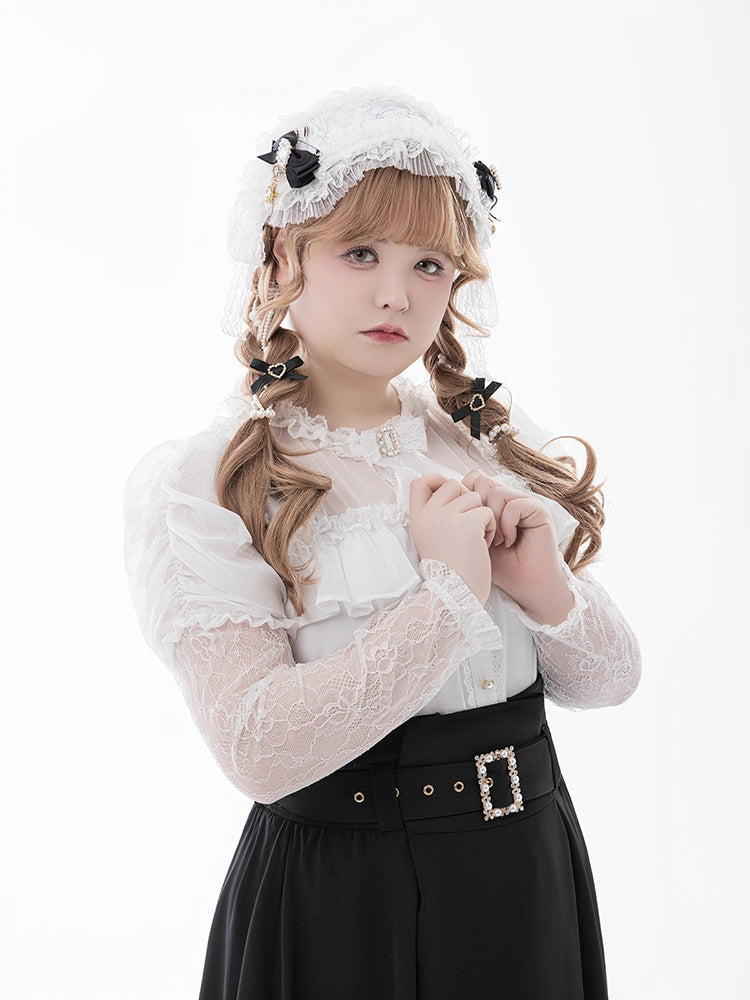 ホワイトイリュージョンネックライン ジュリエットスリーブ ジライケイ レースブラウス+蝶ネクタイ
