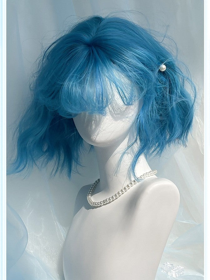 ブルー 33cm ウェーブウィッグ(前髪付き)