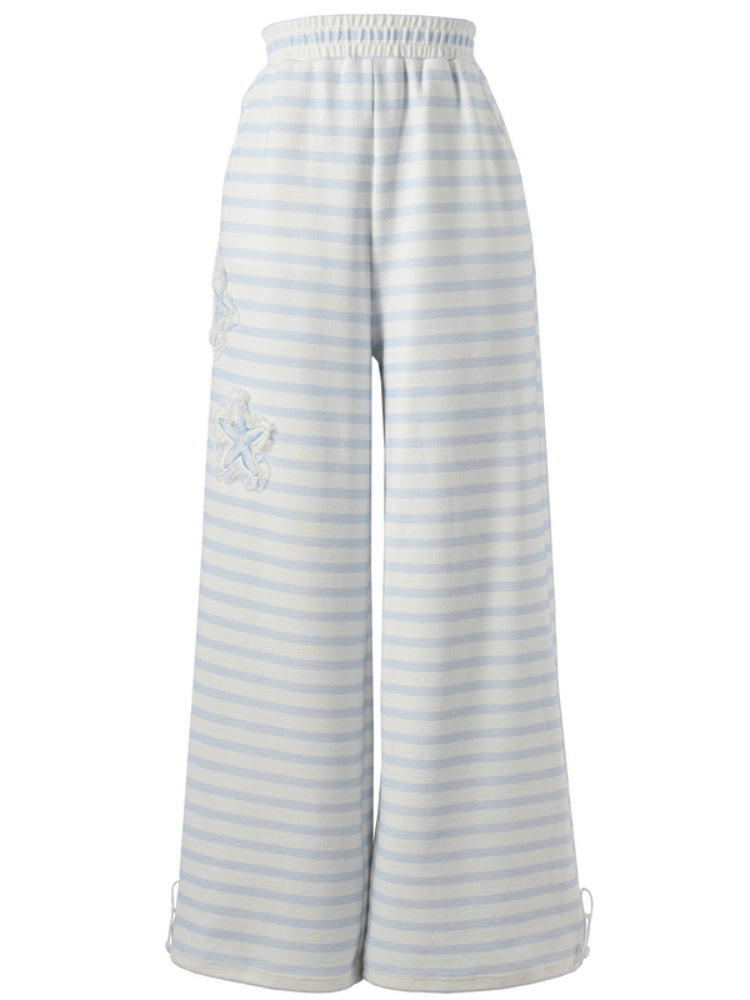 ブルー&ホワイトストライプ ヒトデアップリケ ストレートレッグパンツ レギュラー/ショートバージョン