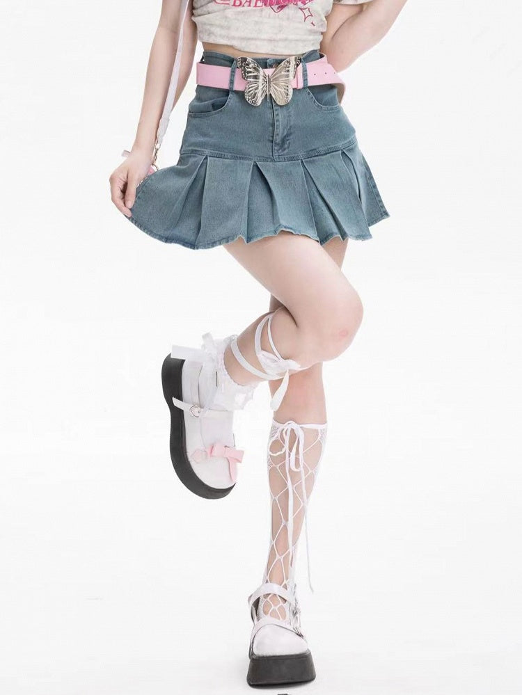 ブルーボックスプリーツヘムハイウエストデニムスカート