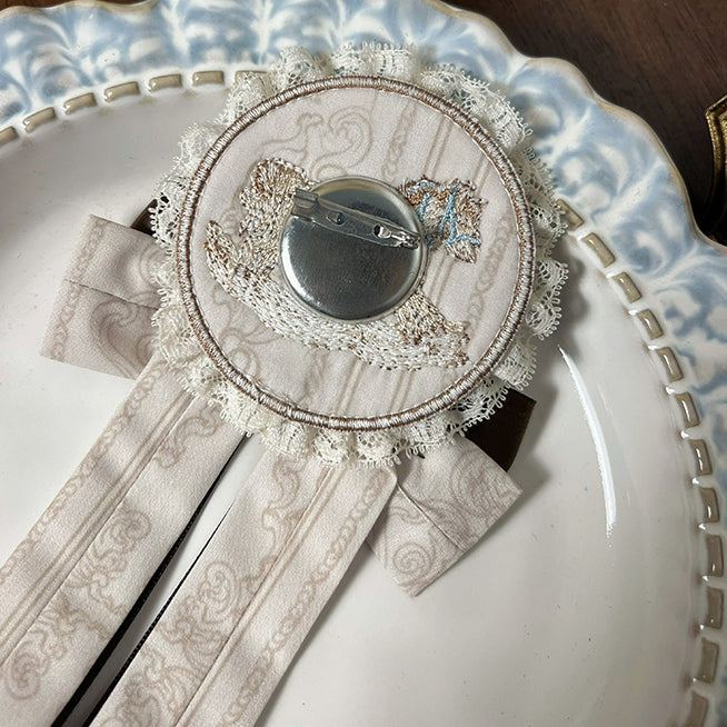 ブルー/ブラウンの蝶結びロッキングホース刺繍バッジ