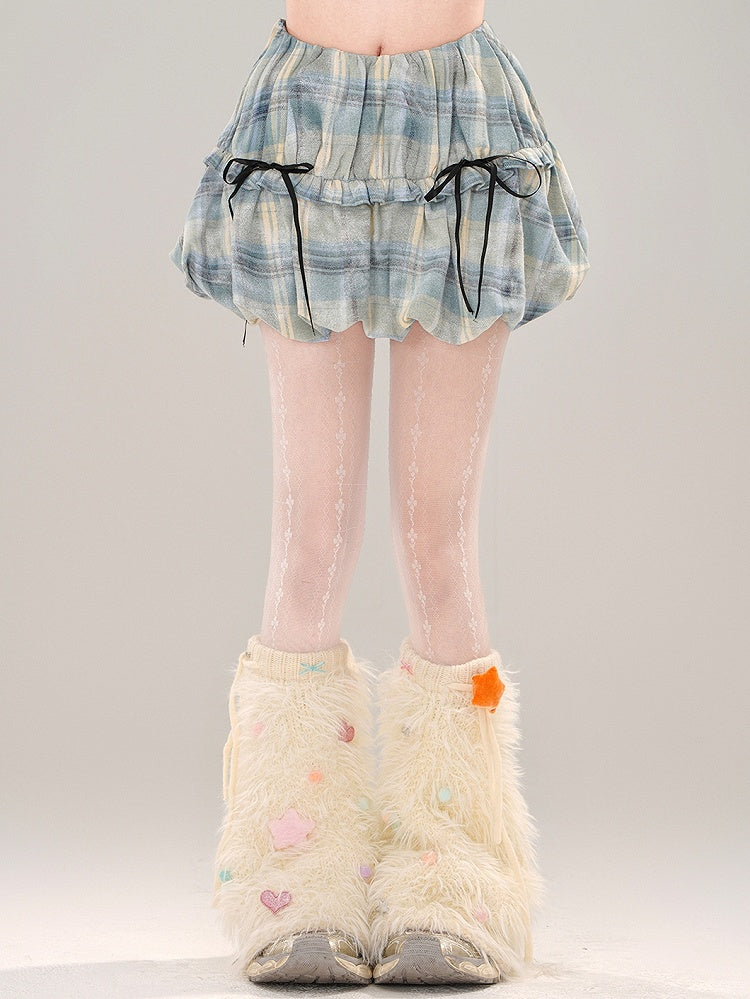 ブルーディテールスカート チェック柄 バブル ボウノット