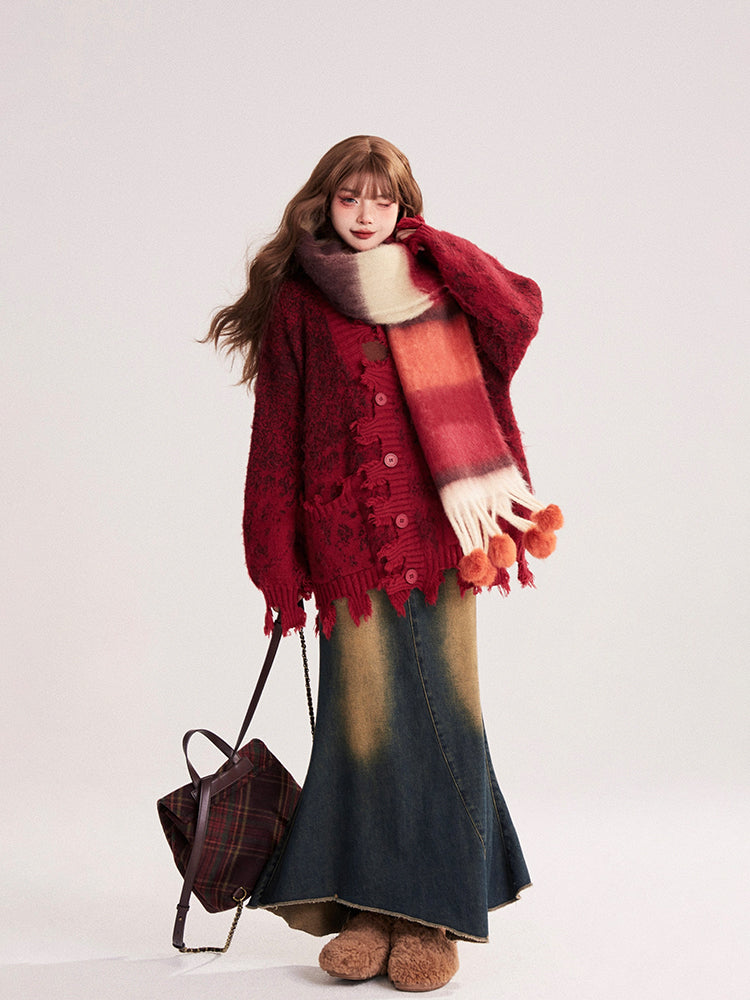 Vintage Washed Blue Mermaid Denim Skirt with Irregular Hem