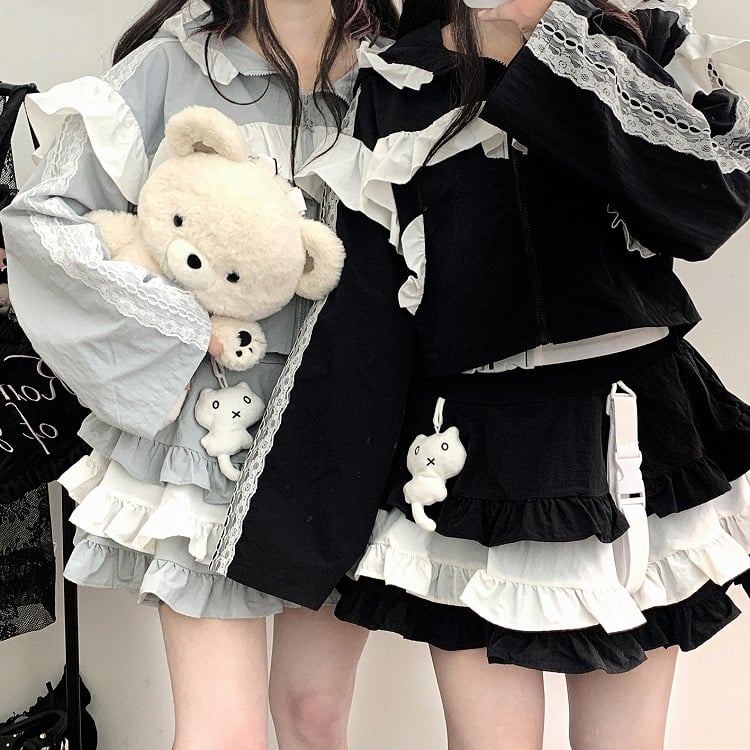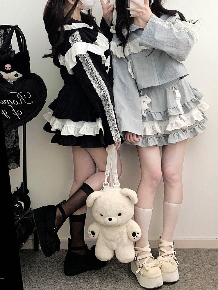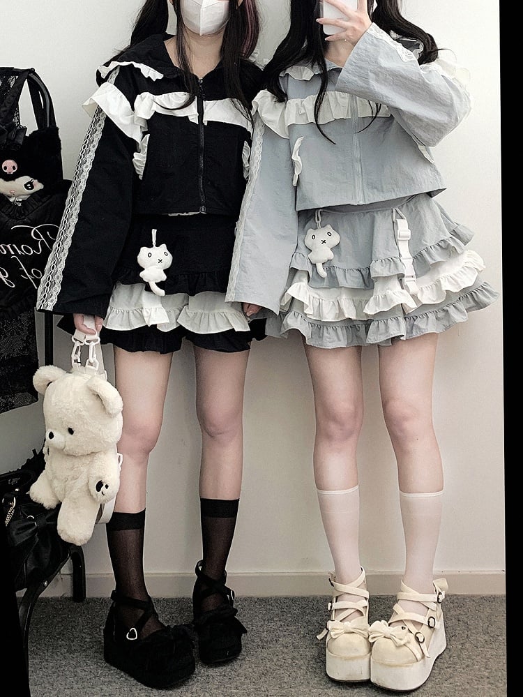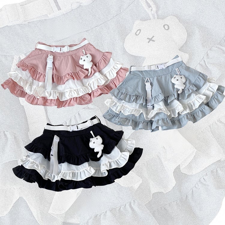 ブルーのJirai Kei Techwearキュートなキティ柄ティアードフリルスカートで、さりげないキュートさをコーディネートにプラス。ブルーのカラーとティアードフリルが遊び心とチャーミングさをプラスし、キティ柄のディテールがユニークで愛らしい雰囲気を演出します。このスカートでスタイリッシュに、そして可愛らしく過ごしましょう。