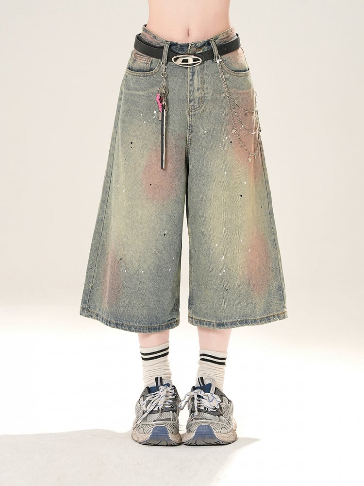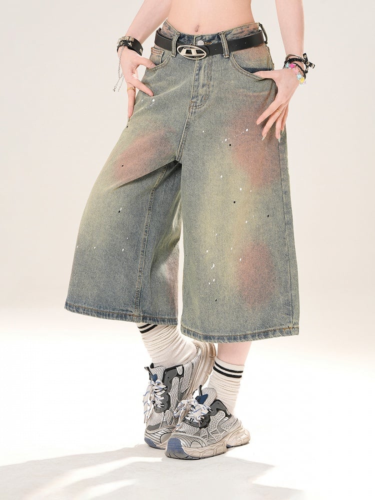 ● ボタン留めとジップフライ / ダメージ加工デザイン / 斜めのフロントポケット / ストレートレッグカット