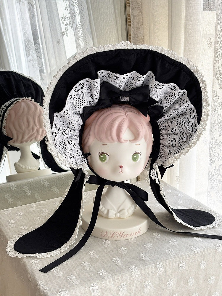 赤 / 青 / ピンク / 黒のうさぎ耳ボンネット