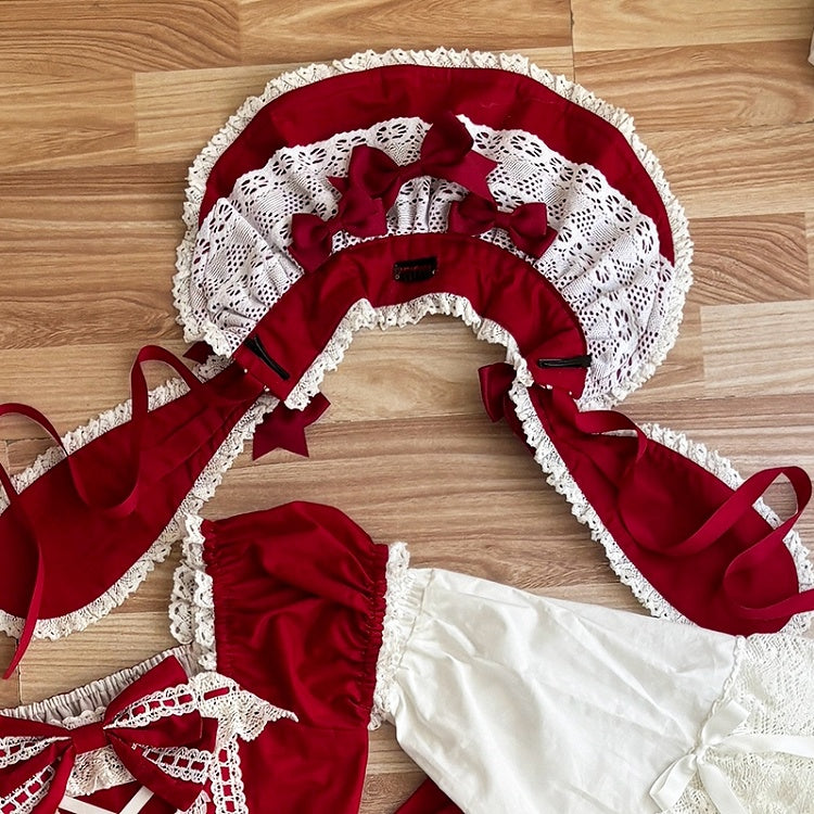 黒と白のオールドスクールロリータファッションドレス蝶結びロリータJSKセット