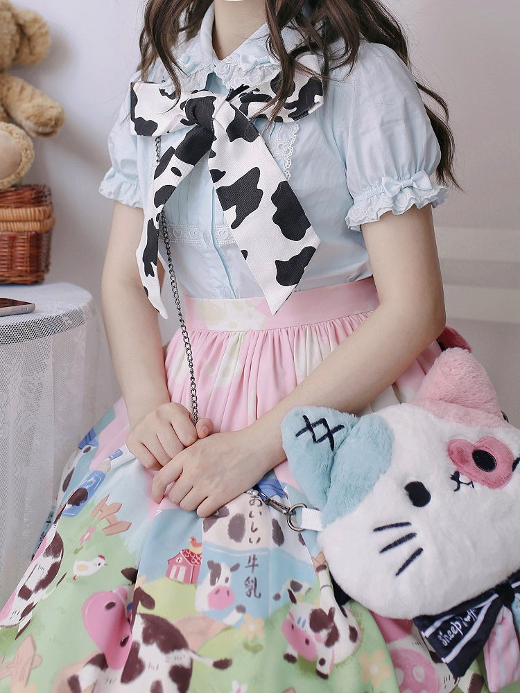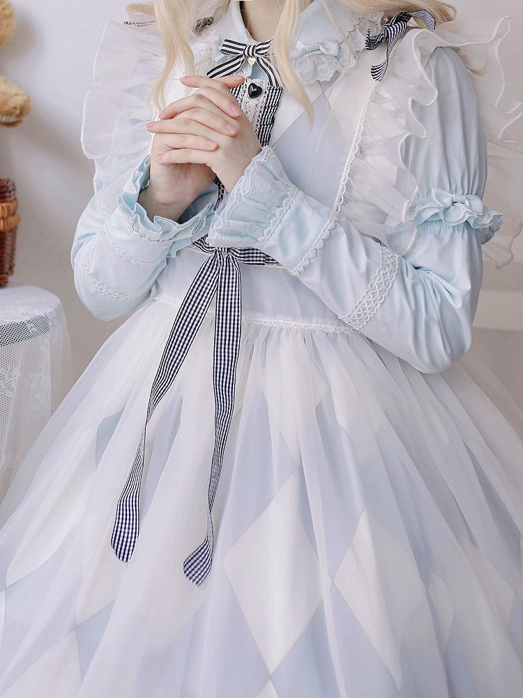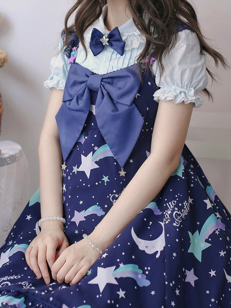 青と白のオールドスクールロリータファッションドレス 蝶結びディテール JSK セット