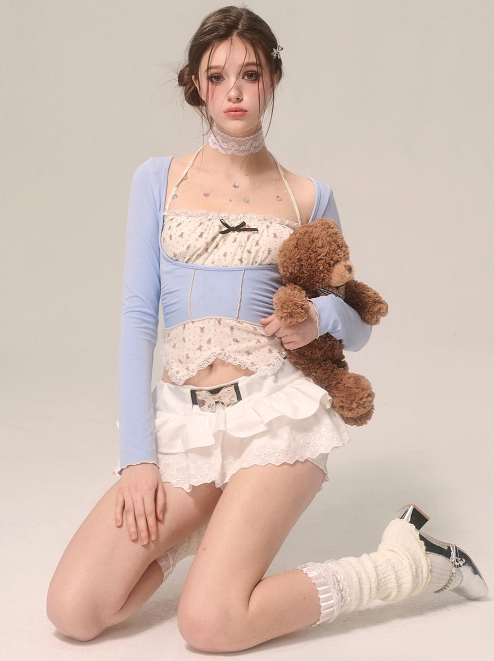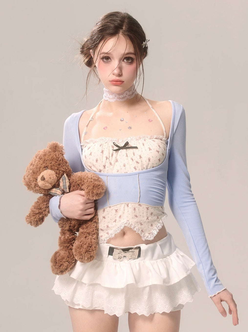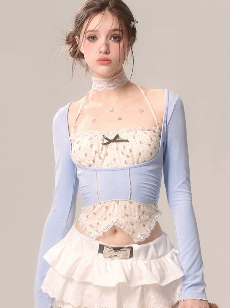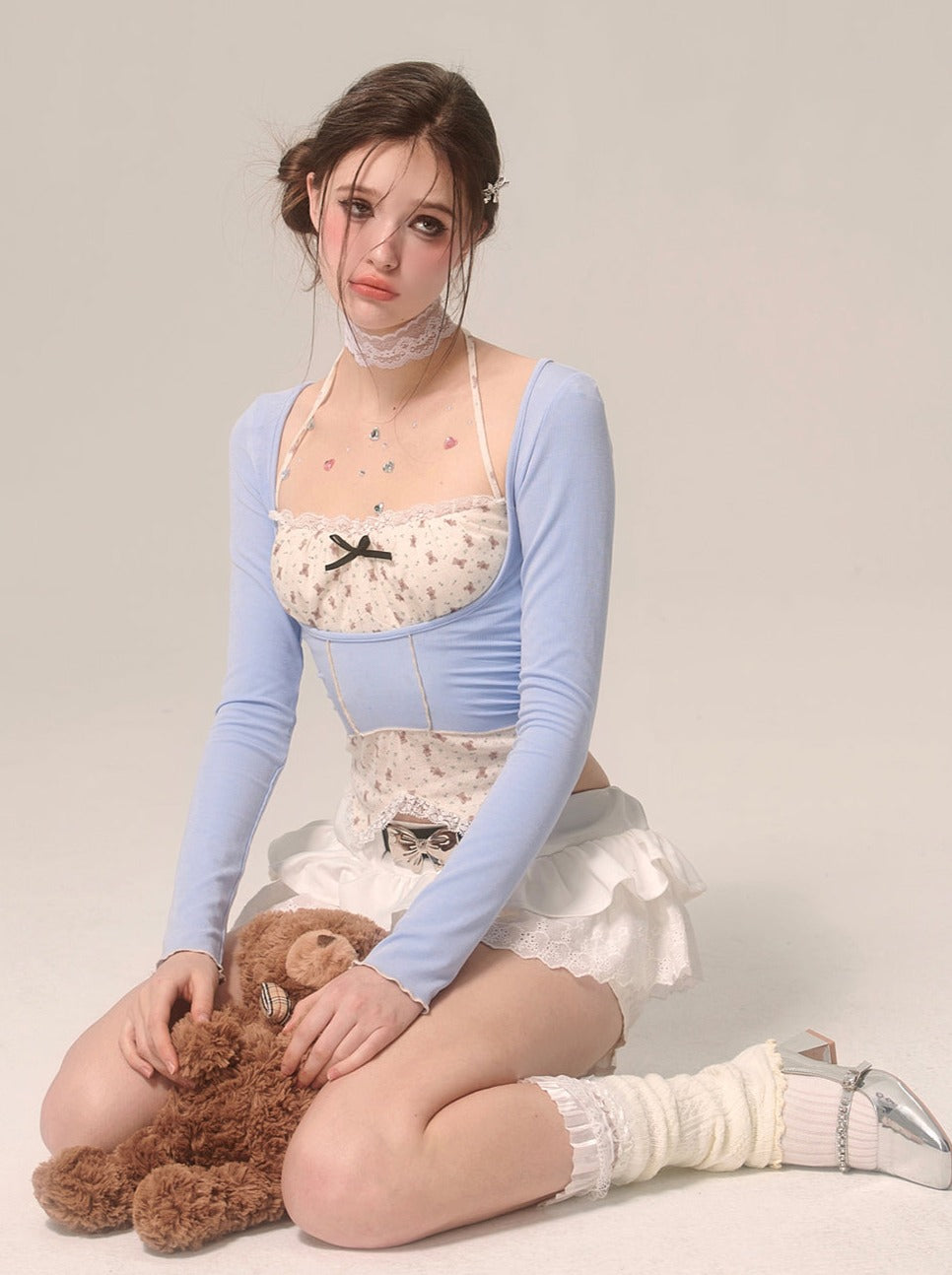 Two Sisterの愛らしいブルーのトップスは、フェイクウエストでスタイルアップと着心地をアップ。どんなシーンにもぴったり。キュートさとフェミニンさをワードローブにプラスして、今日から活躍間違いなし!