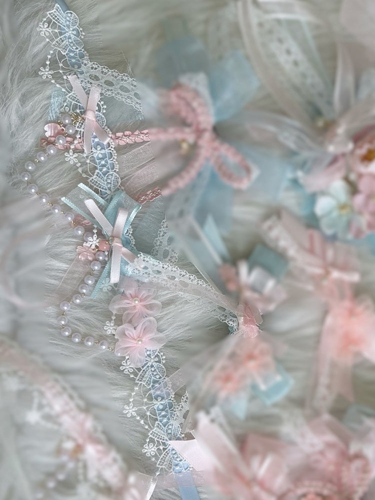 Sweet Lolita Pink & Blue Bow Choker with Bead Chain and Sakura Pendant