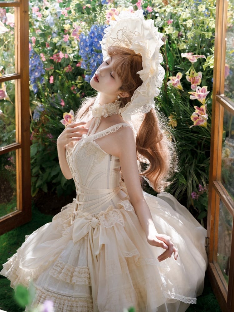 黒と白のオールドスクールロリータファッションドレス蝶結びロリータJSKセット