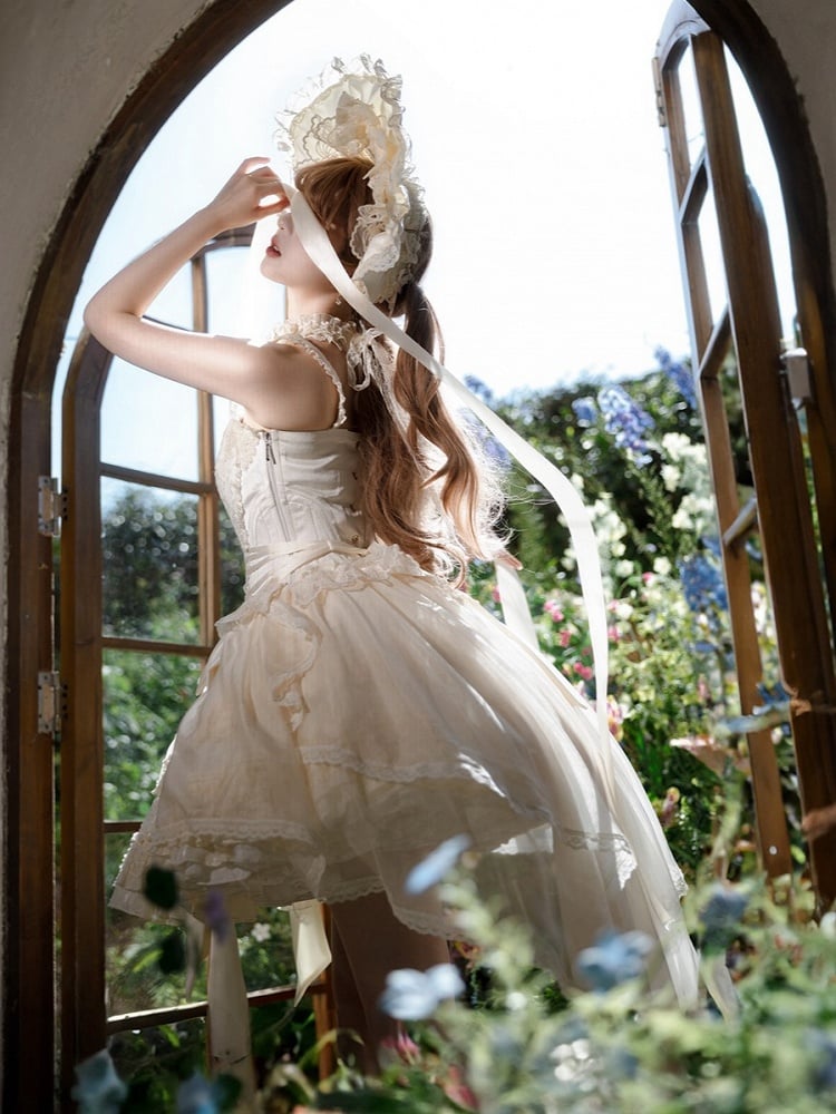 青と白のオールドスクールロリータファッションドレス 蝶結びディテール JSK セット