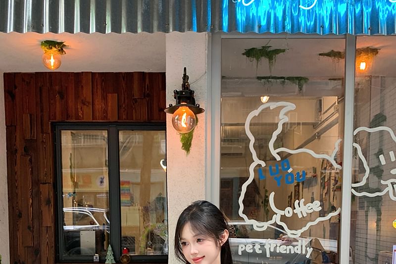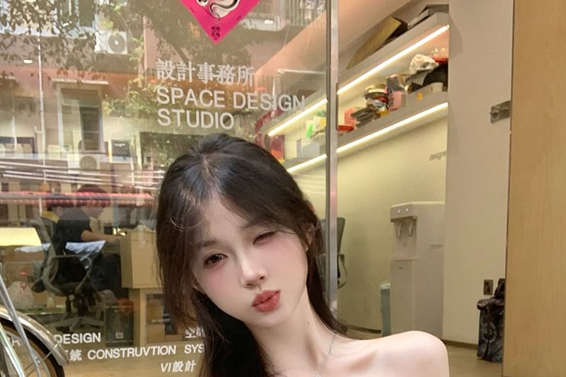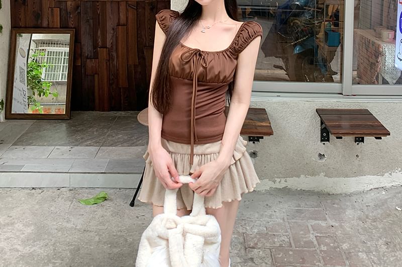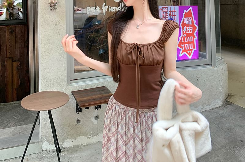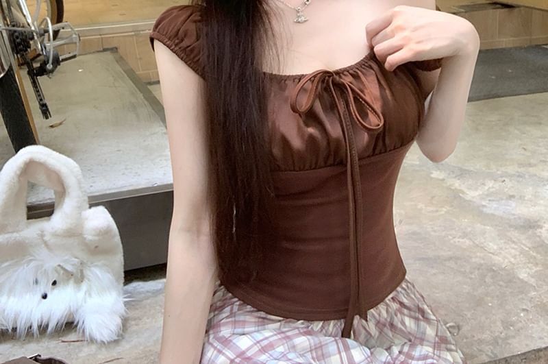 キャップスリーブ スクエアネック プレーンボウ スリムフィット ブラウス