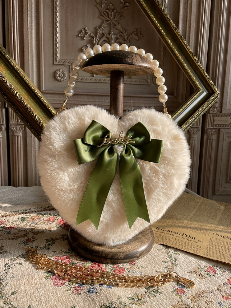 Bowknot Bag Heart-Shaped Bead – Plush with Hand Handle Options and Color Lolita 11