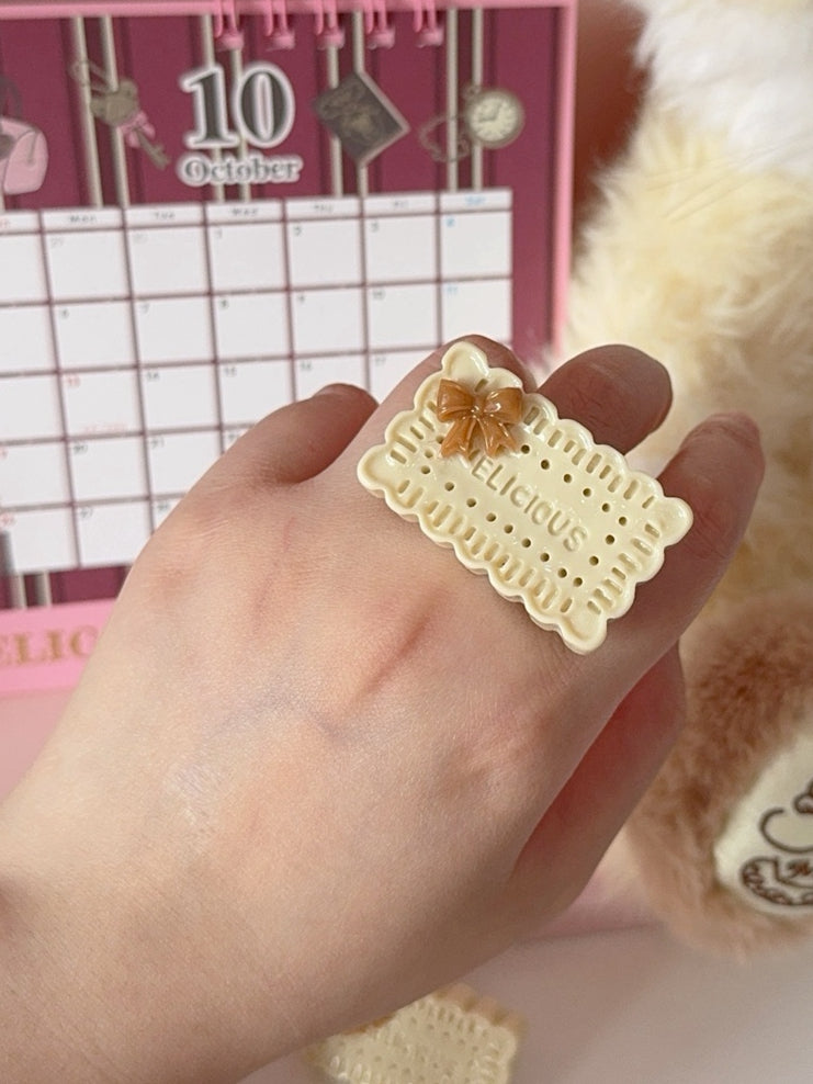 ホワイト/ブラウンの蝶結び装飾チョコレートリング