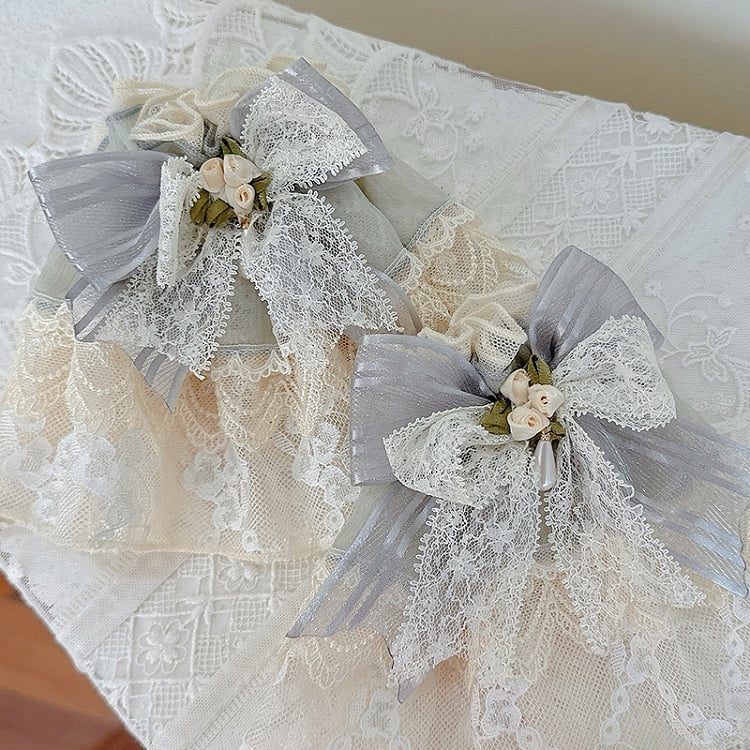 ダスティブルーのリボン結びクリーミーなリストカフス