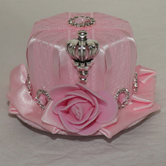 3つのオプションの王冠とラインストーンで飾られた花/蝶結びデザインのミニハット