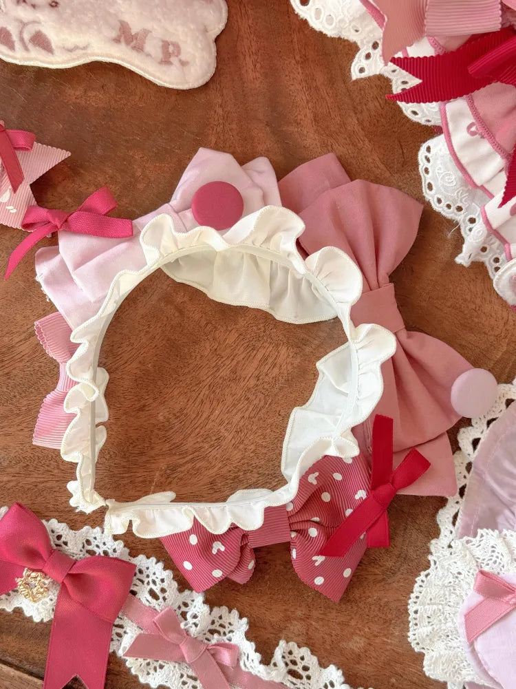 ホワイトとピンクのロリータボンネットチョーカー