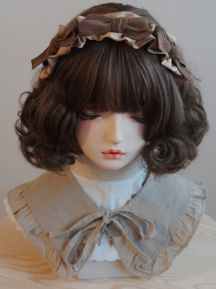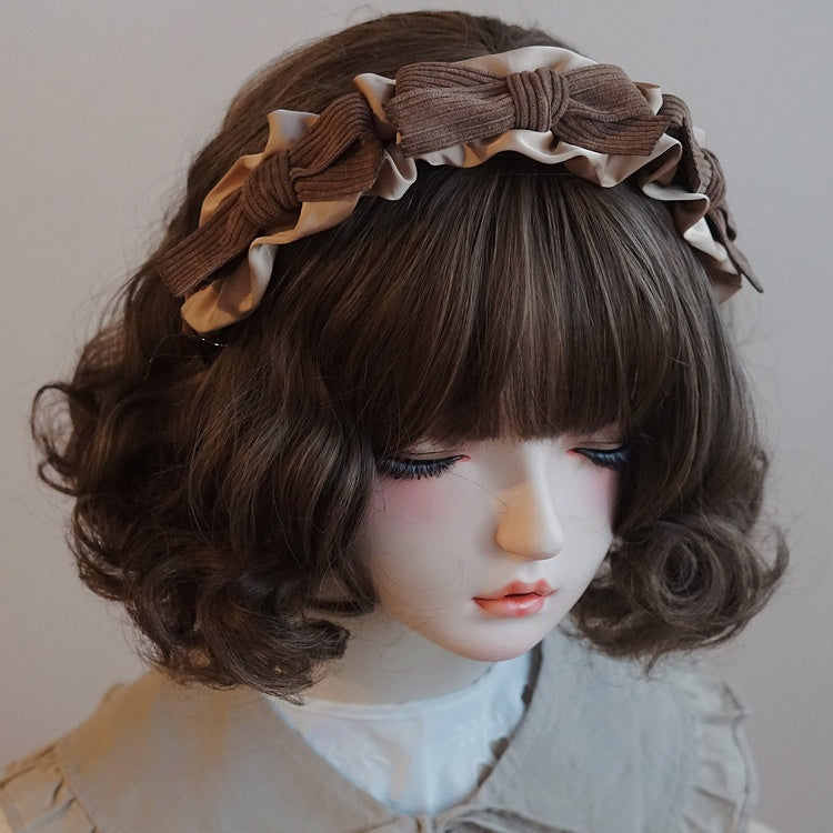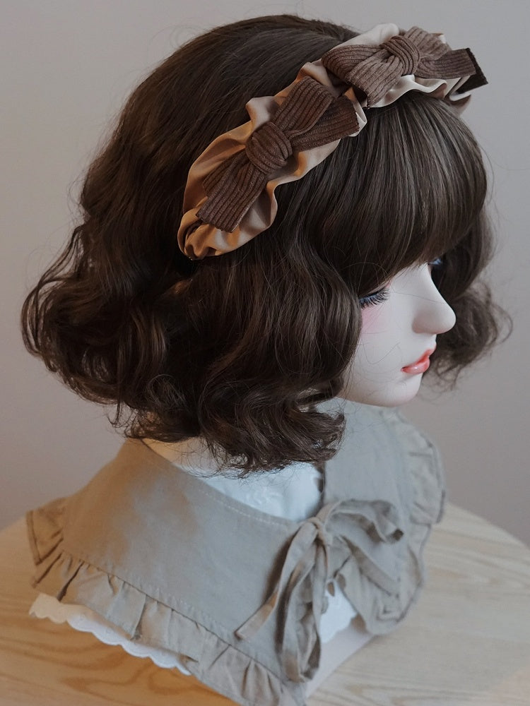 ブラウンの蝶結びのディテール、フリルトリム、KC