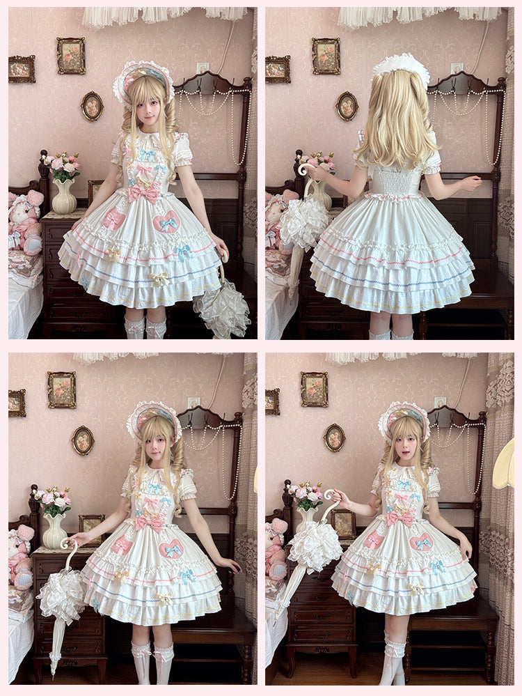 ピンクと白のオールドスクールロリータファッションドレス、蝶結びディテール、ロリータJSKセット