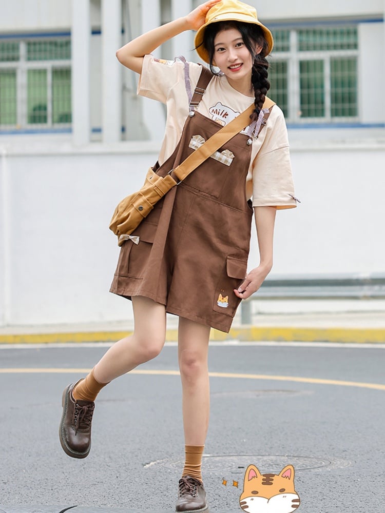 ブラウンのカーゴポケット&ボウノットディテールオーバーオールショーツで、キュートで快適な着心地をキープ!チャーミングなボウノットディテールと機能的なカーゴポケットが特徴のこのショーツは、毎日の冒険にぴったり。実用性のためにスタイルを犠牲にする必要はありません。このショーツなら、両方手に入れることができます!