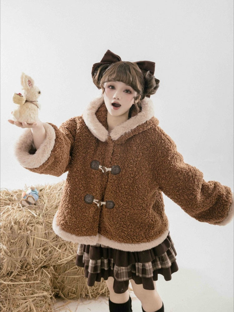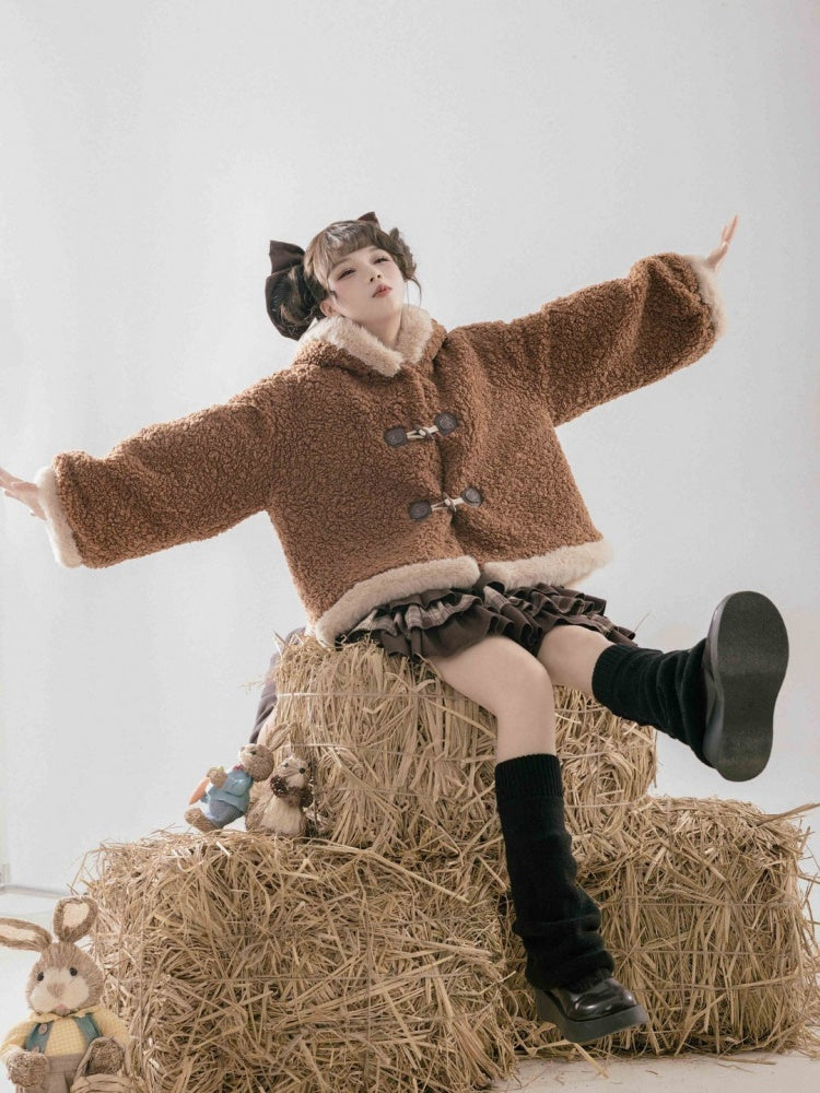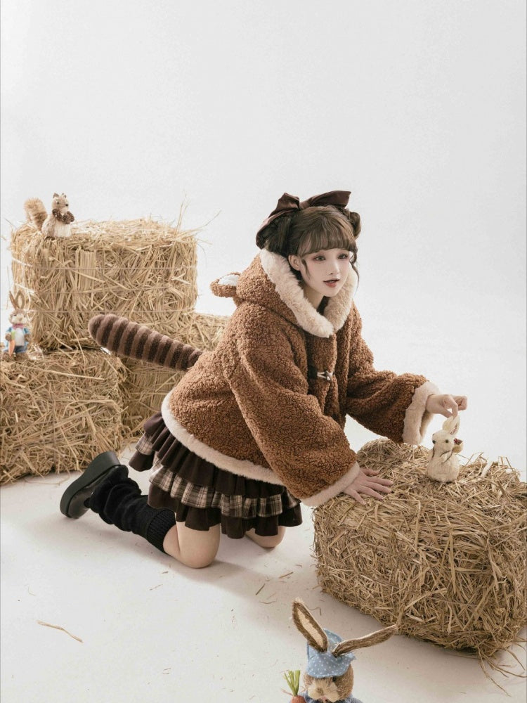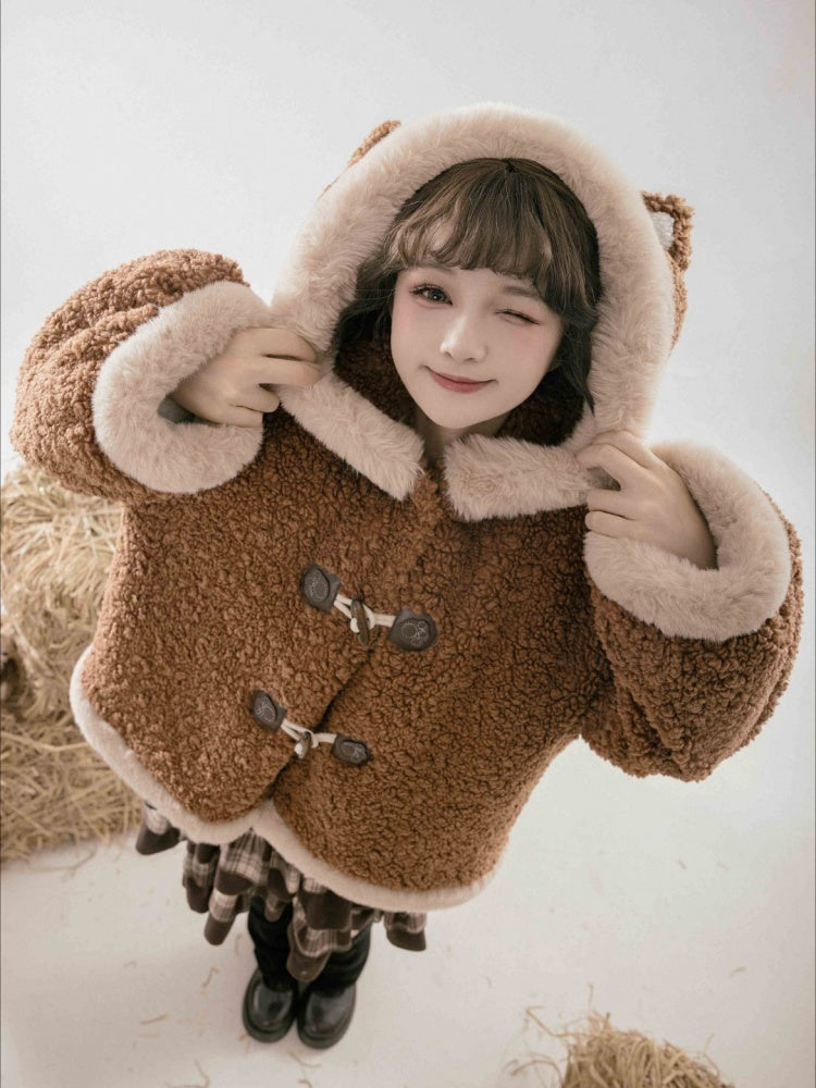 ブラウンのフリース、レッサーパンダの耳をあしらったフード付きウィンターコートで、あなたの内なるキュートさを解き放ちましょう。この愛らしいコートで暖かくスタイリッシュに過ごしましょう。冬のお出かけにぴったりです。柔らかなフリース素材と遊び心のあるパンダの耳のデザインが、あなたの装いに温かみと魅力を添えます。