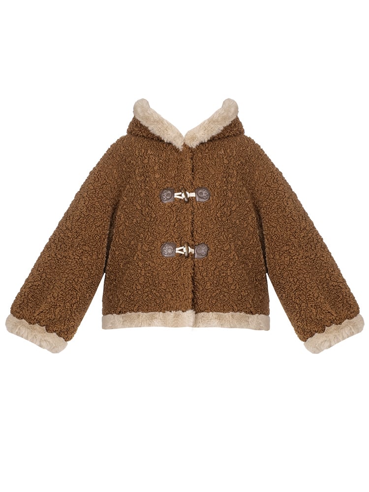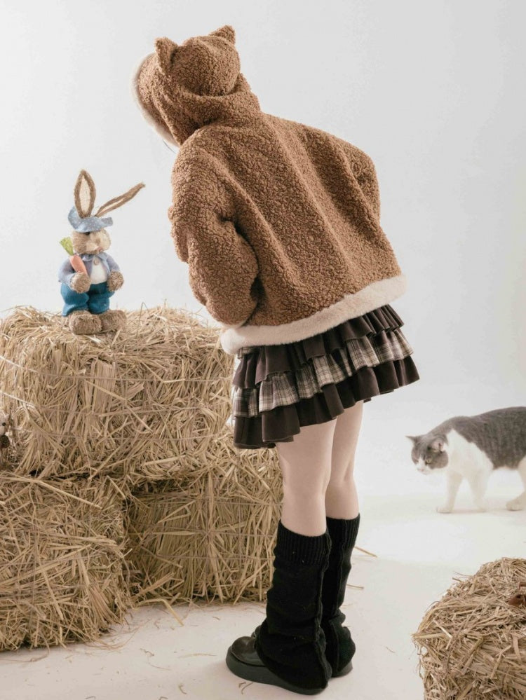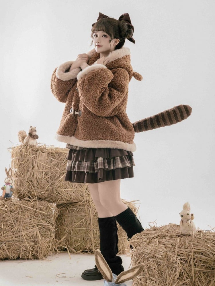 ブラウンフリース レッサーパンダの耳付きフード付き冬用コート