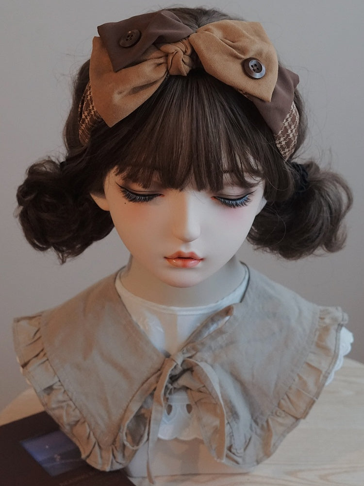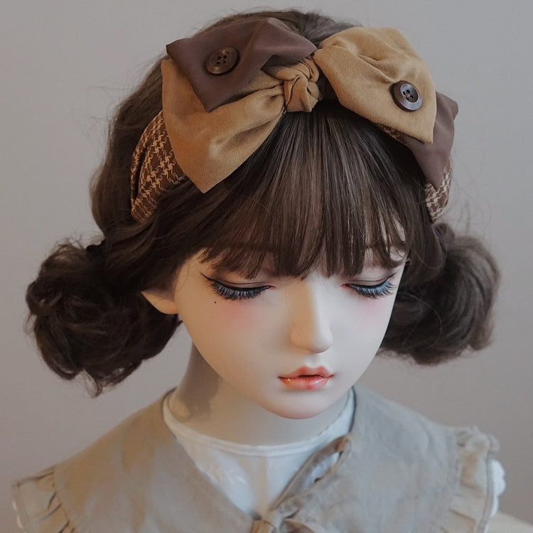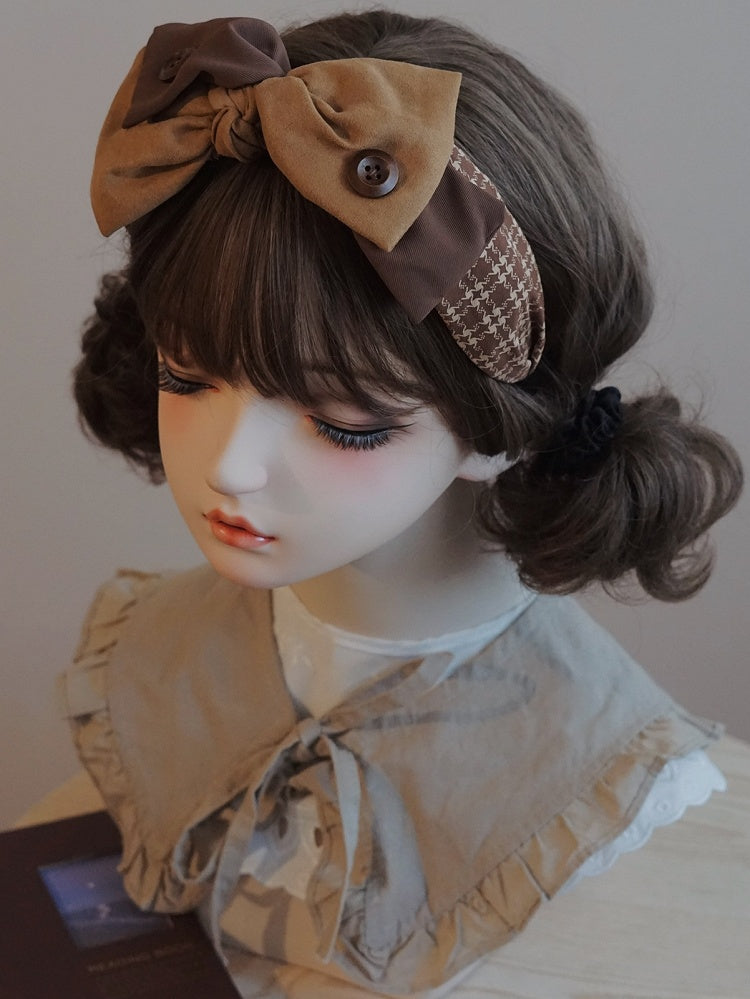 ブラウンKC装飾ボタンリボンイエローとビッグ