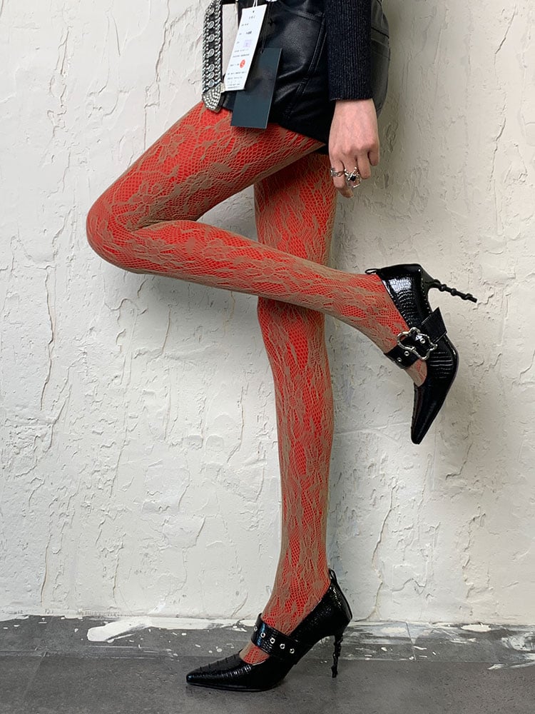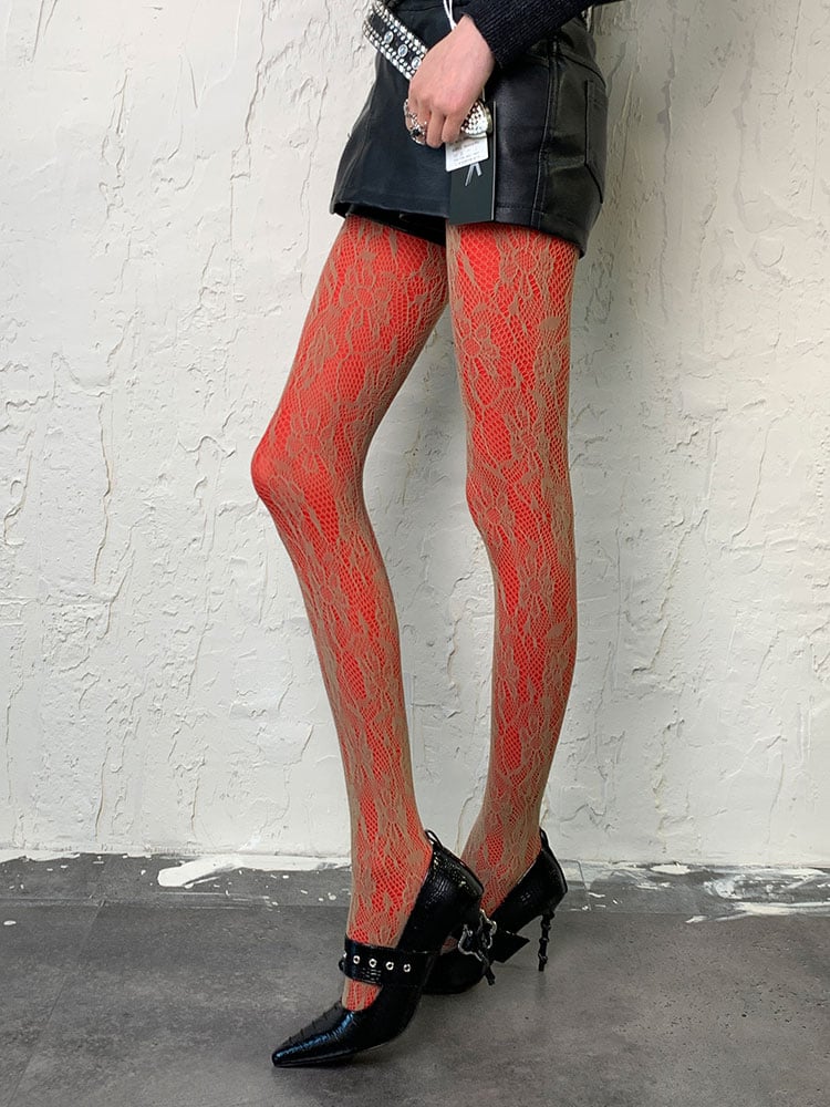 キュートなブラウンのY2Kフローラル柄ホローアウトタイツで、装いに華やかさをプラス。花柄が甘さをプラスし、ホローアウトパターンが個性的で目を引くデザインです。流行に敏感なワードローブに欠かせない一品です。