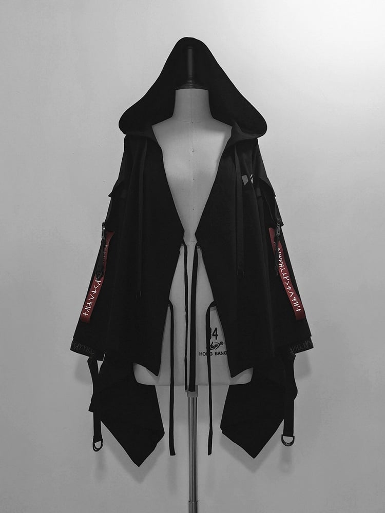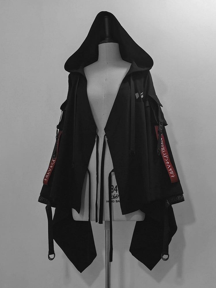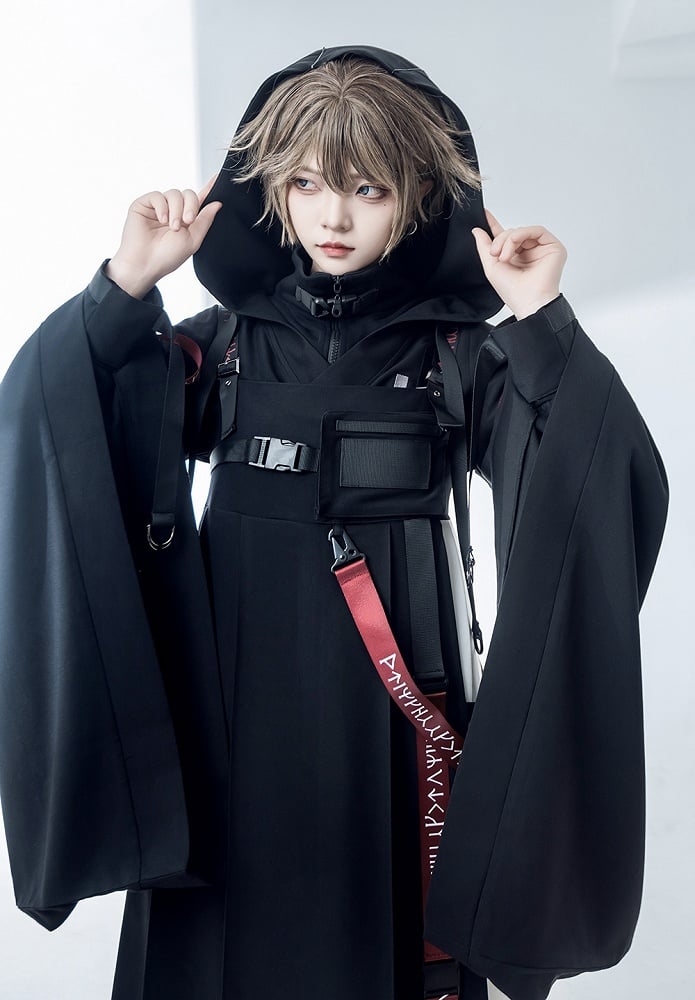 ブラックテックウェア王子ロリータバックルストラップフードジャケット