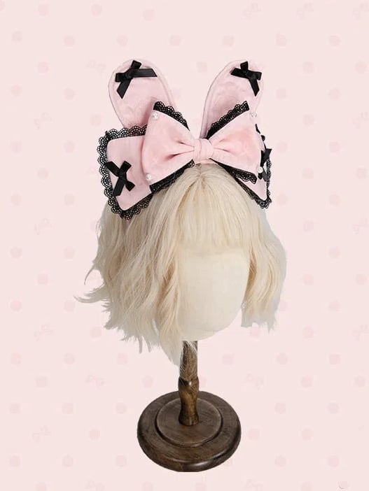 ウサギの蝶結びと白/黒の耳 KC ピンク