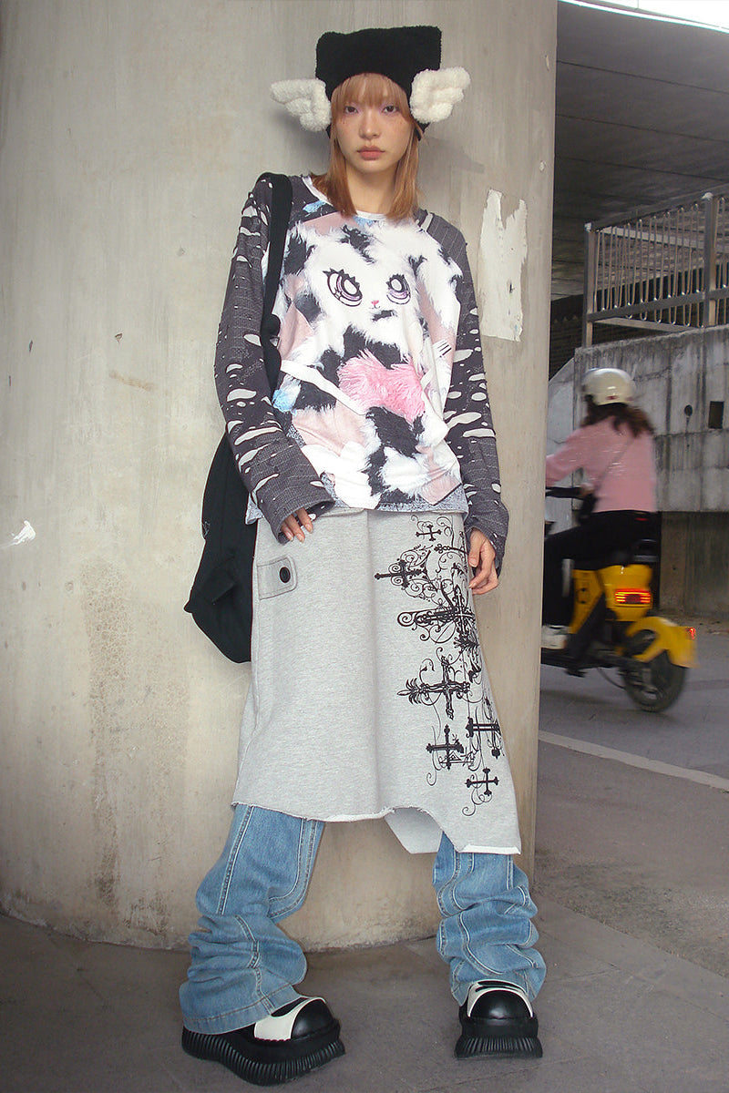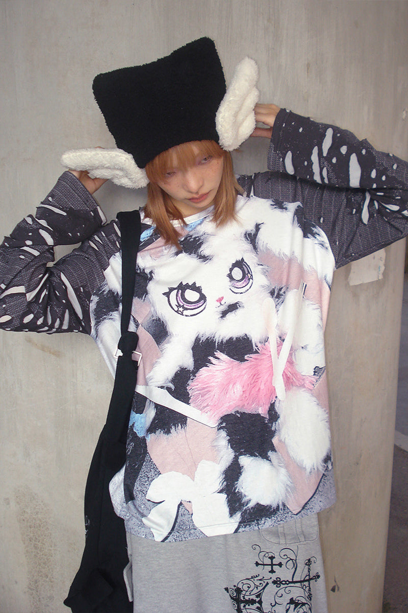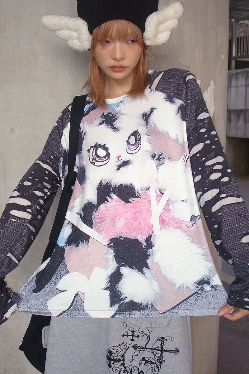 ❤バニープリントのプラケットスリーブトップス❤