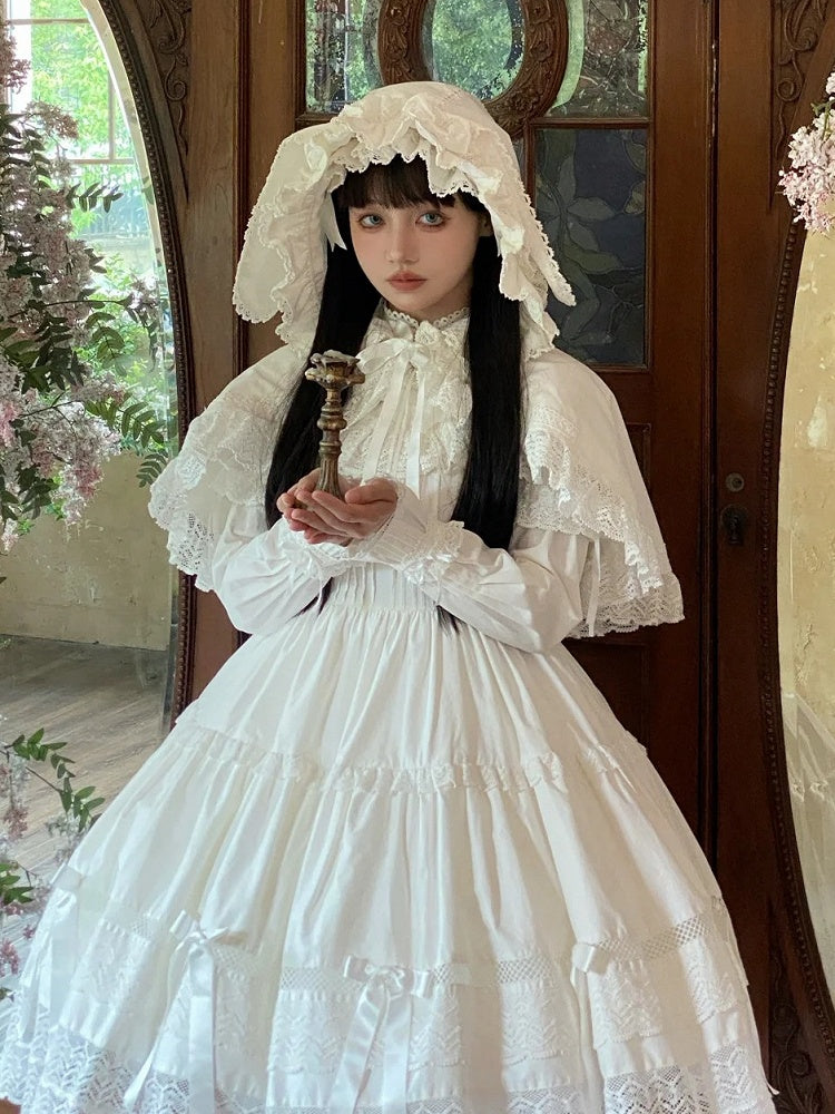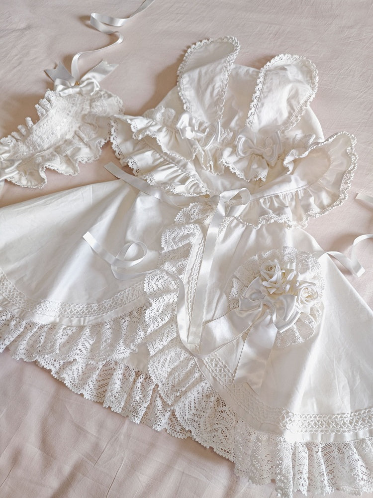 青と白のオールドスクールロリータファッションドレス 蝶結びディテール JSK セット