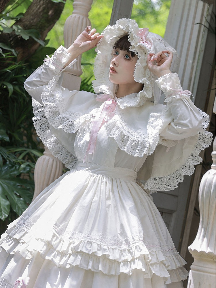 ピンクと白のオールドスクールロリータファッションドレス、蝶結びディテール、ロリータJSKセット
