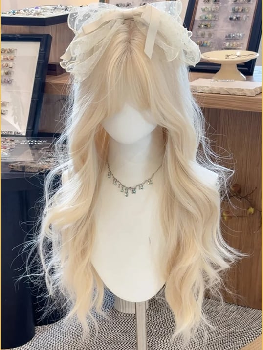 ブロンドのアンダーバスト丈ウェーブウィッグ(前髪付き)
