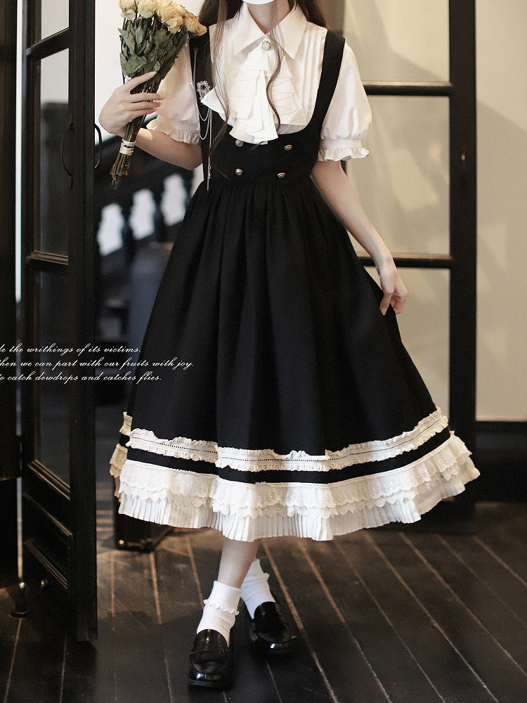 黒と白のオールドスクールロリータファッションドレス蝶結びロリータJSKセット