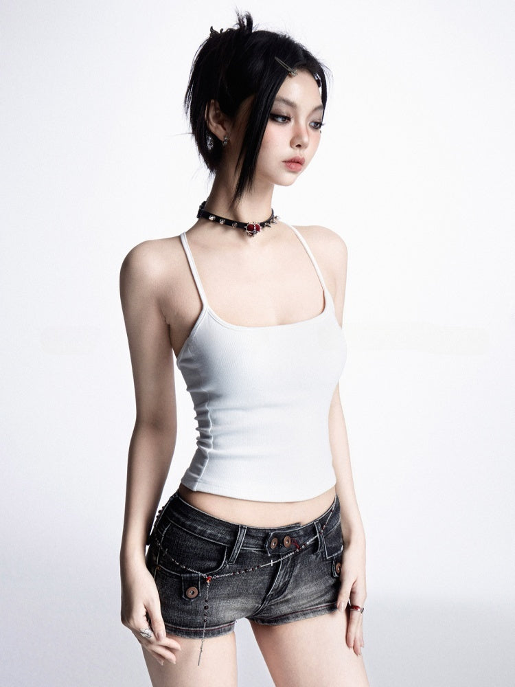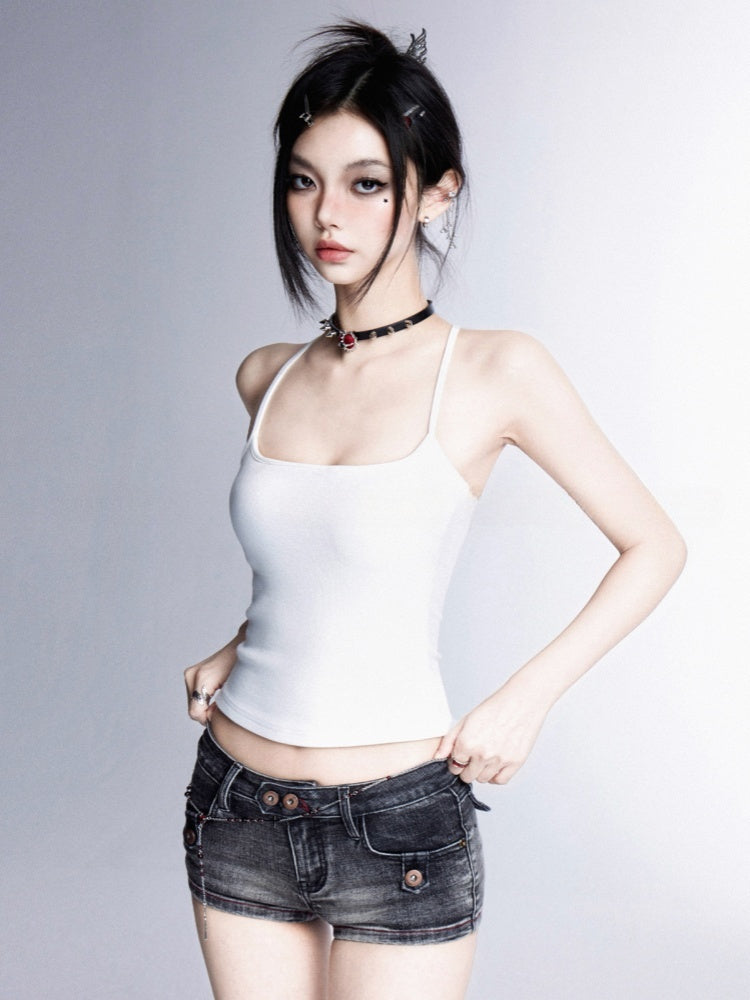 ブラック/ホワイト スクープネックライン パッド入りカップ バックレス グラマラス キャミソールトップ